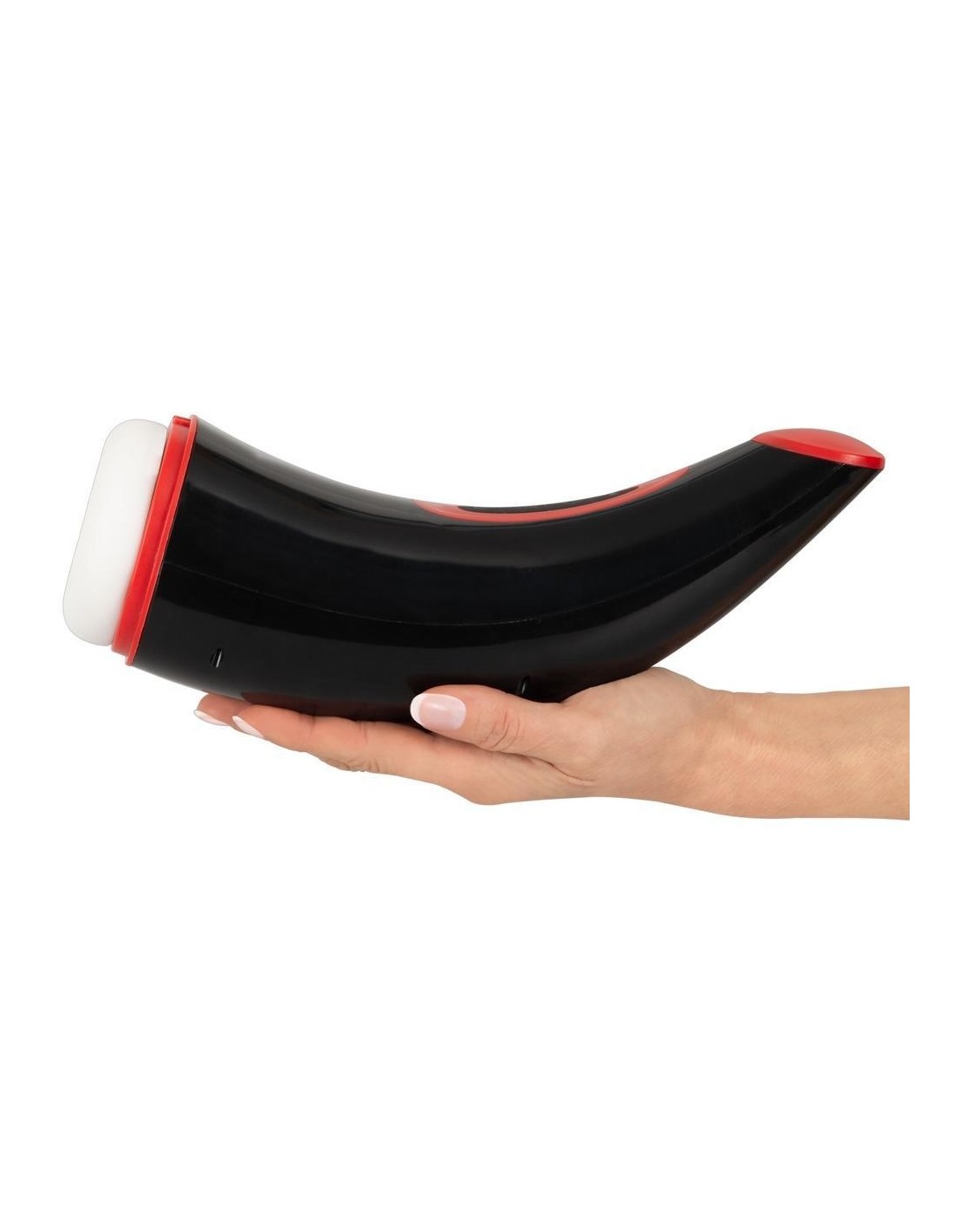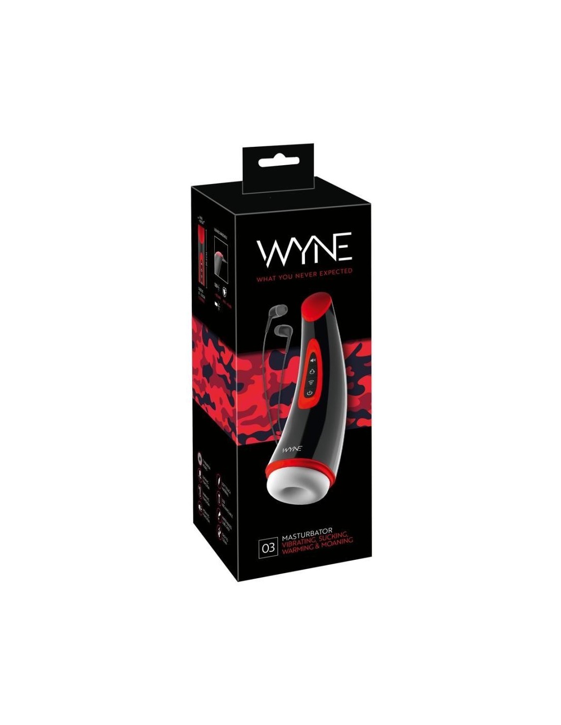 Potente masturbatore 03 di WYNE che coccola intensamente il pene in modo completamente automatico con 7 modalità di vibrazione e 3 di aspirazione. Inoltre, una funzione di riscaldamento fino a 40°C e gemiti sexy (3 suoni) attraverso le cuffie in dotazione per farvi entrare nell'atmosfera. Tutte le funzioni possono essere controllate separatamente e comodamente premendo un pulsante direttamente sul giocattolo.