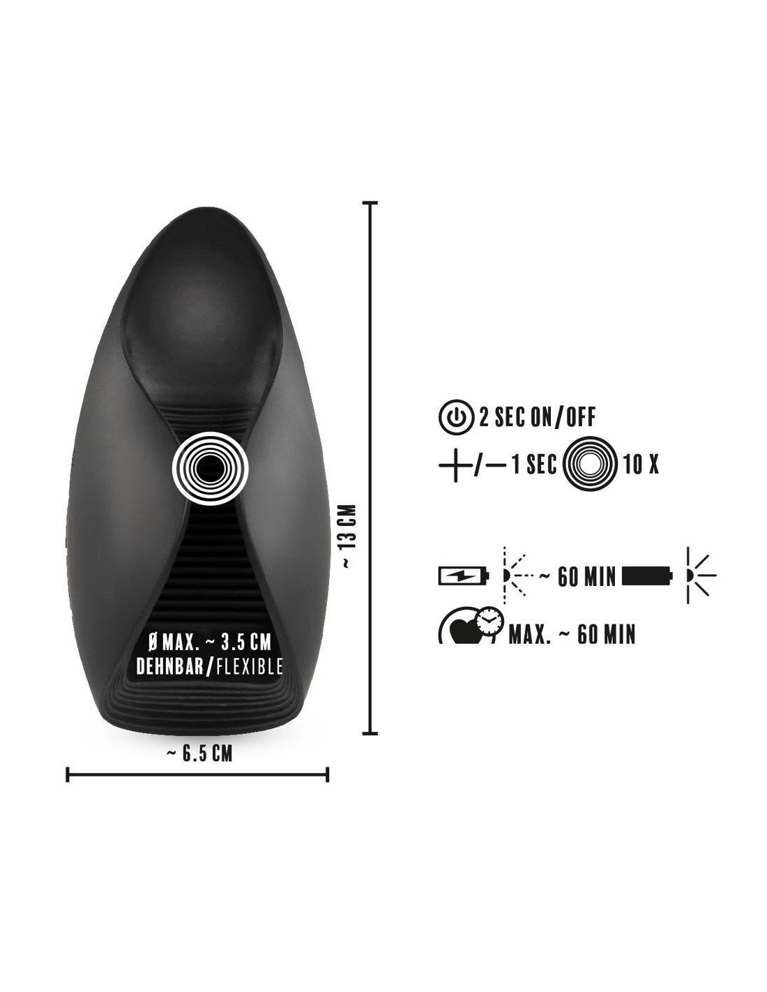 Pratico masturbatore vibrante per glande di Rebel con ali flessibili che racchiudono il pene in modo comodo e stabile, anche quando non è eretto. All'interno sono presenti eccitanti scanalature di stimolazione per un massaggio intenso. 10 modalità di vibrazione offrono un piacere versatile e possono essere facilmente regolate verso l'alto e verso il basso con la semplice pressione di un pulsante. Il silicone setoso di alta qualità assicura il massimo comfort.