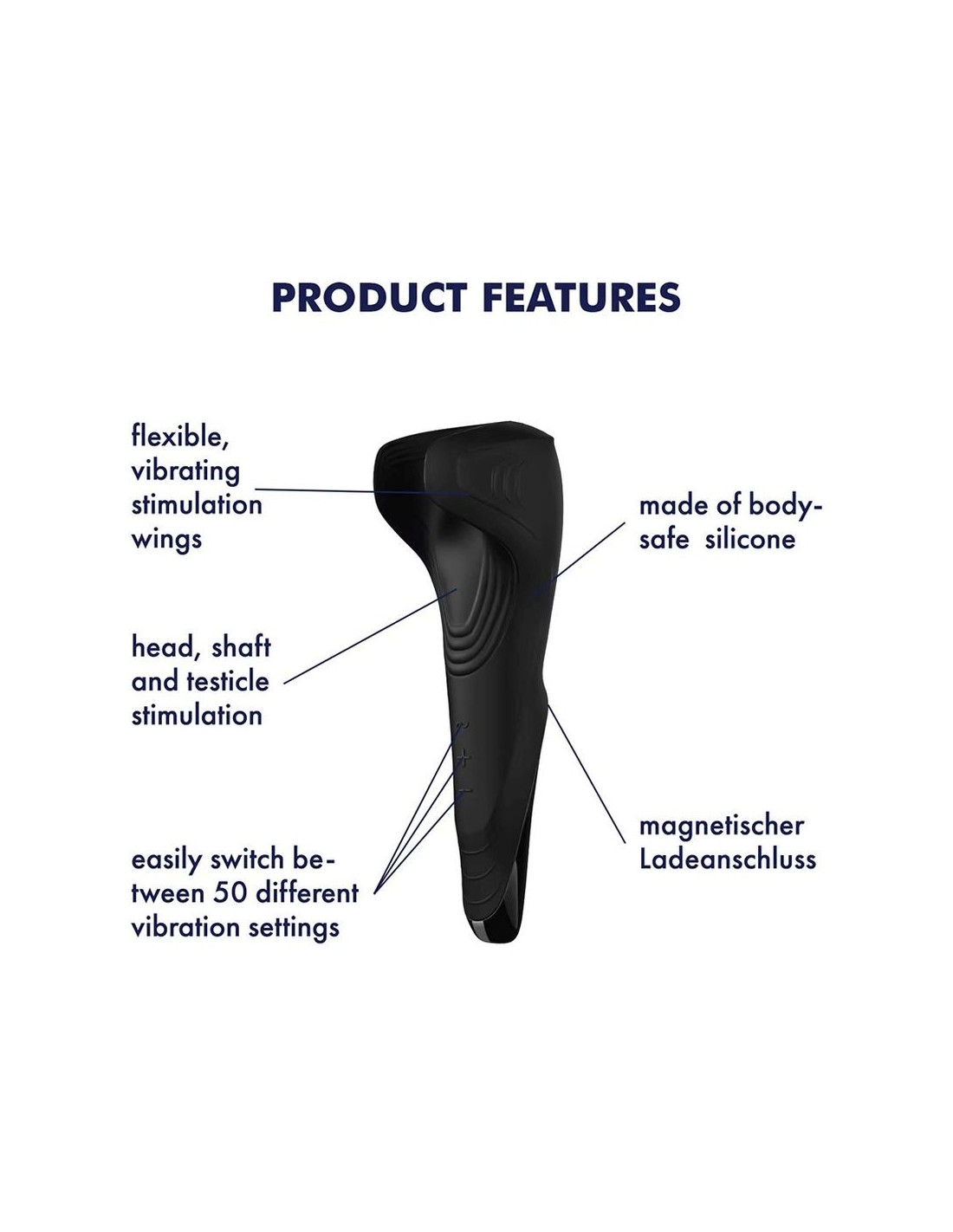 Le due morbide alette del vibratore Wand sono estremamente flessibili ed elastiche - così il tuo pene viene avvolto in modo saldo e sicuro. Ad ogni movimento verso l’alto o verso il basso senti i dettagli delle nervature che ti coccolano con un’ulteriore, seducente stimolazione. L’impugnatura ergonomica sta comodamente in mano. Essendo realizzato tutto in pregiato silicone pieno, questo messaggero di piacere ti entusiasma con la sua tattilità setosa e la sensazione di morbidezza sulla pelle. Ma anche gli elementi interni sono convincenti: 5 stimolanti programmi di vibrazione si possono combinare con 7 diverse intensità premendo un pulsante - a seconda di ciò che desideri, il vibratore Satisfyer Men Wand ti offre la modalità di vibrazione ottimale per ogni atmosfera. Neanche l’acqua trattiene questo bel tipo: Grazie alla lavorazione impermeabile ti accompagna volentieri nelle tue avventure senza freni sotto la doccia o nella vasca da bagno.
