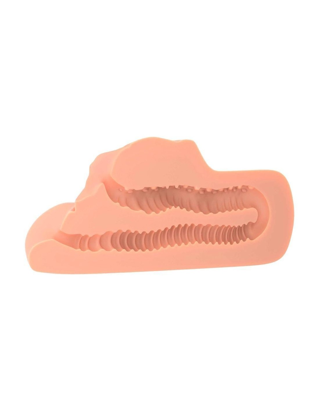 Pratico masturbatore in look vagina/ano realistico. I tunnel del piacere fatti di materiale simile alla pelle Fanta Flesh sono dotati di scanalature di stimolazione distintamente strutturate all'interno, che assicurano un massaggio intenso ed efficace per l'orgasmo durante l'handjob. La pressione può essere facilmente variata per una deliziosa sensazione di presa. Inoltre, il design del tunnel chiuso fornisce un eccitante effetto di aspirazione. I due tunnel del piacere sono collegati per una facile pulizia.