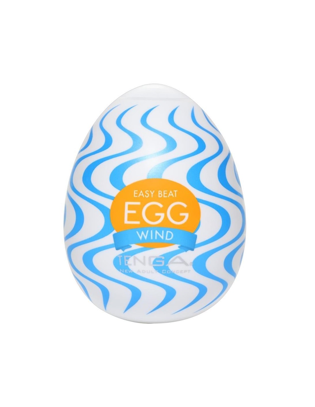 Masturbatore compatto monouso Egg Wind di TENGA con una struttura stimolante a onde eccitanti all'interno. Il masturbatore ultra-flessibile si trova all'interno del manicotto a forma di uovo e viene utilizzato insieme al lubrificante in dotazione durante una sega.