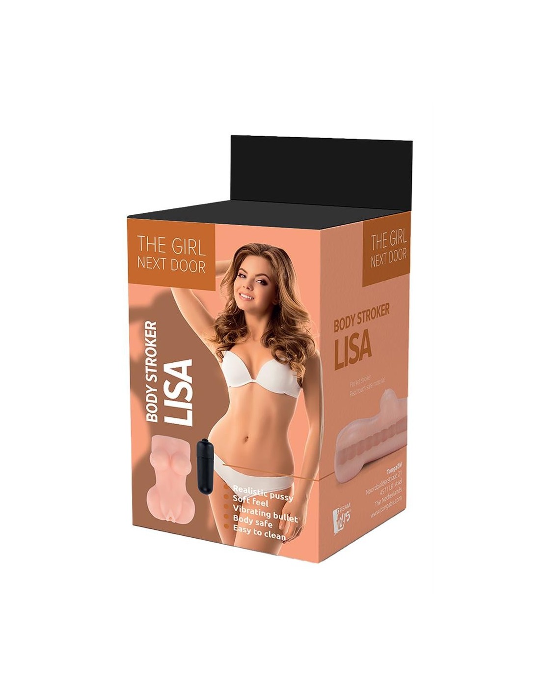 This body stroker has a super soft and realistic texture inside for exciting sensations. It is made of long lasting, real-feel TPE, Lisa has a stretchable vagina and an open end on the other side, to accommodate all penis lengths or to insert the single-speed vibrating bullet that is included. If you love vibrations during your masturbation sessions, Lisa is here to please you.