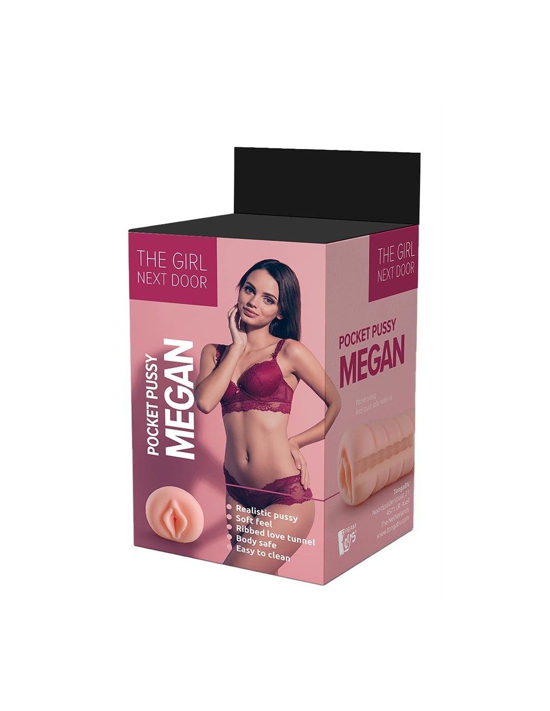 Pocket pussy with super soft and realistic texture inside for exciting sensations. Megan is the Girl Next Door that turns you on! Made of long lasting, real-feel TPE, Megan has a stretchable vagina and an open ended love tunnel to accommodate all penis lengths and for easy cleaning. Body safe, free of phthalates and latex.
