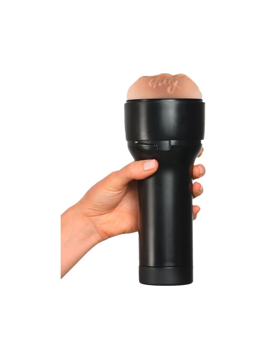 Masturbator Feel from Kiiroo with an original replica of erotic star Molly Stewart's vagina. The various textures inside the masturbator are very similar to Molly's tight vagina and the different textures provide an intense, orgasmic massage during a hand job. The sleeve is made out of soft, skin-like Superskin material and there is also Molly's signature next to the opening. The masturbator is in a discreet and easy-to-hold case. It can also be removed from the case for cleaning. It can be used with the Keon Adapter by Kiiroo (not included) for fully-automatic and interactive pleasure.