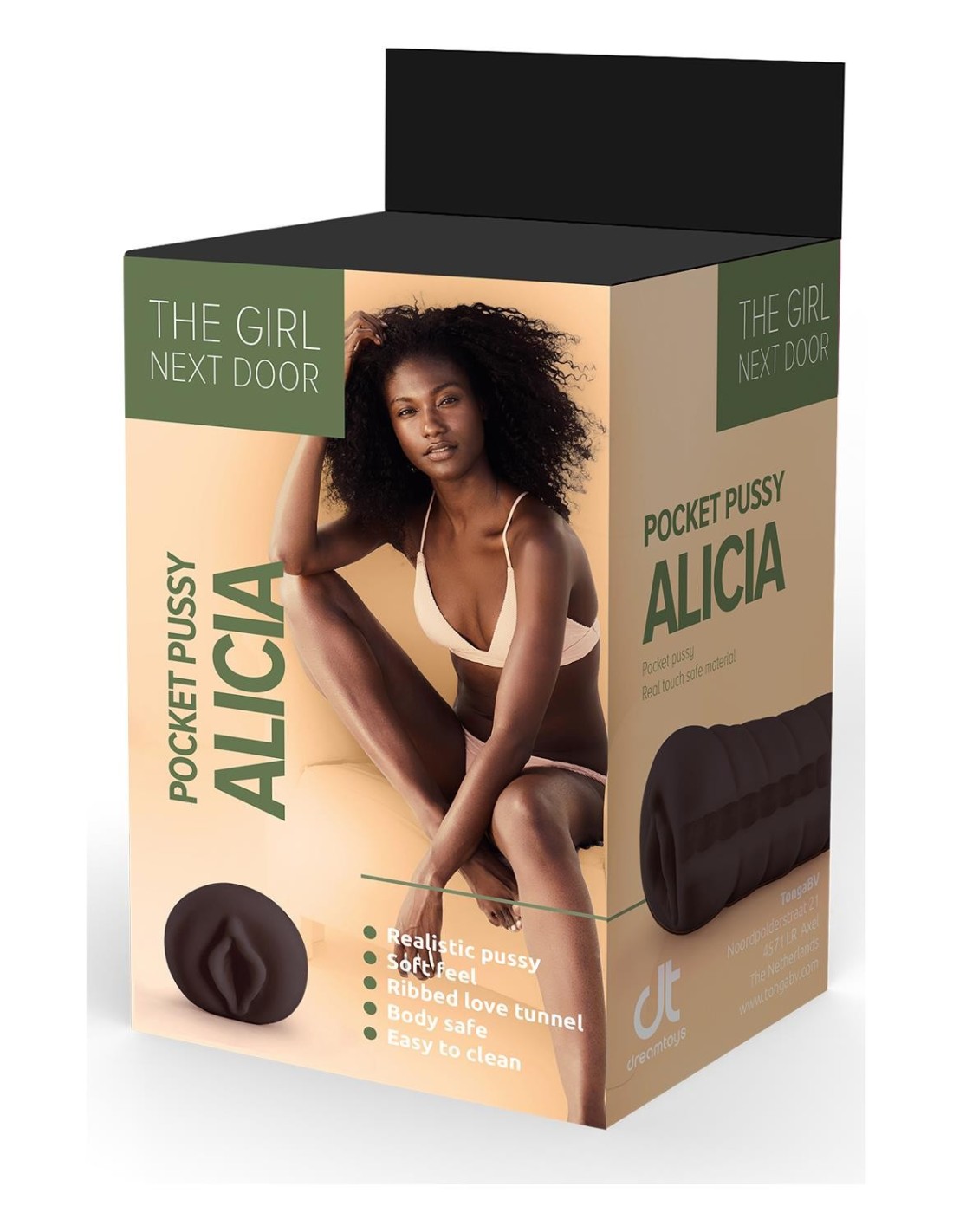 Pocket pussy with super soft and realistic texture inside for exciting sensations. Alicia is the Girl Next Door that turns you on! Made of long lasting, real-feel TPE, Alicia has a stretchable vagina and an open ended love tunnel to accommodate all penis lengths and for easy cleaning. Body safe, free of phthalates and latex.