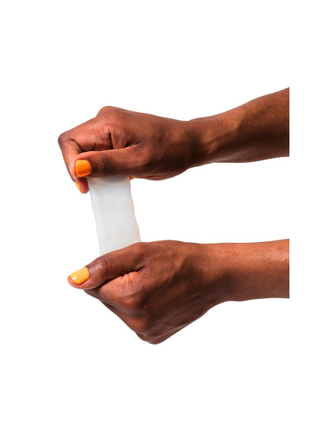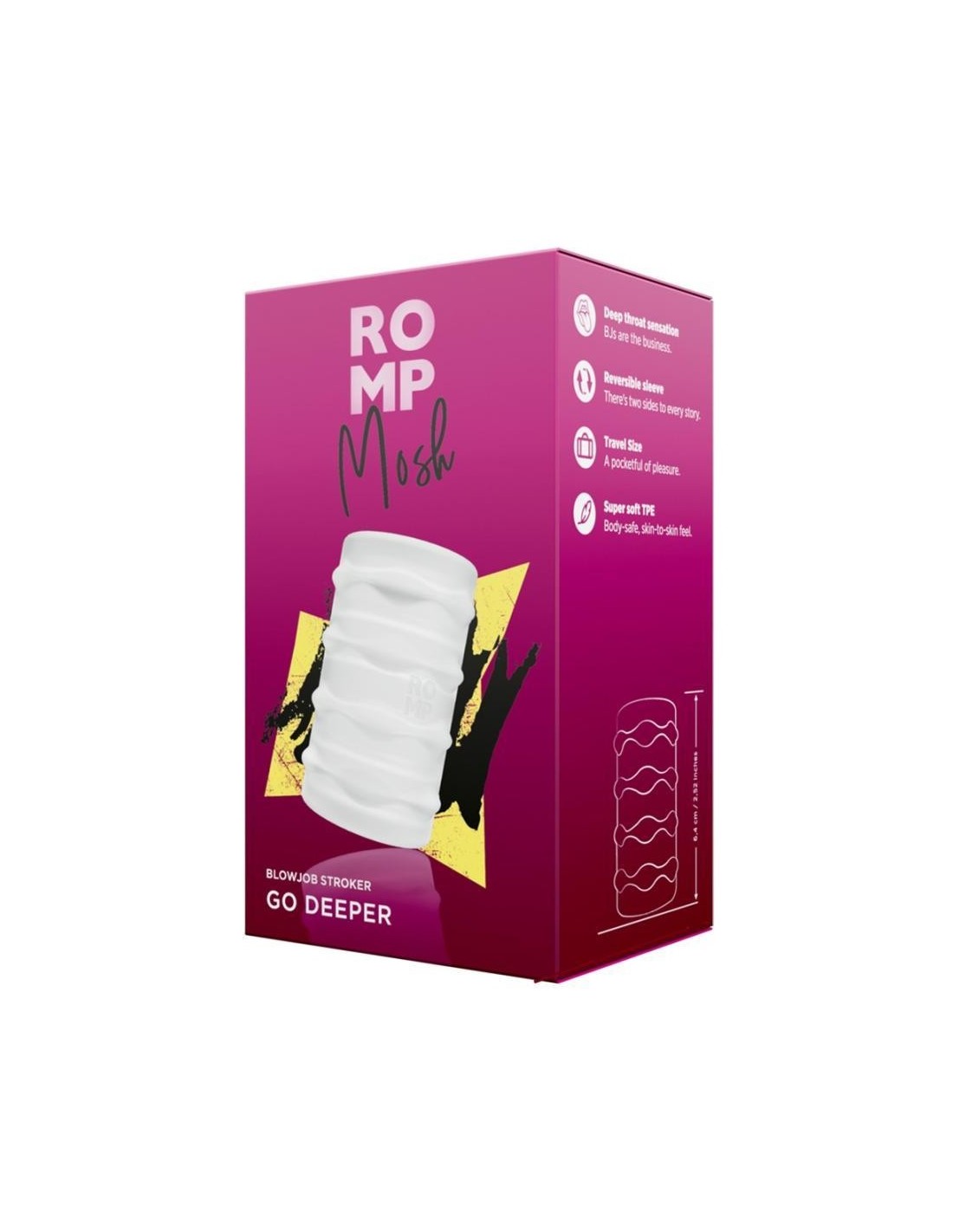 The transparent Mosh masturbator from ROMP has 2 different stimulating textures. The flexible sleeve can easily be used whenever its needed and it also provides a diverse hand job experience thanks to its various textures as well. The small, easy-to-use masturbator is also easy to clean and is therefore perfect for uncomplicated fun at home or on the go.