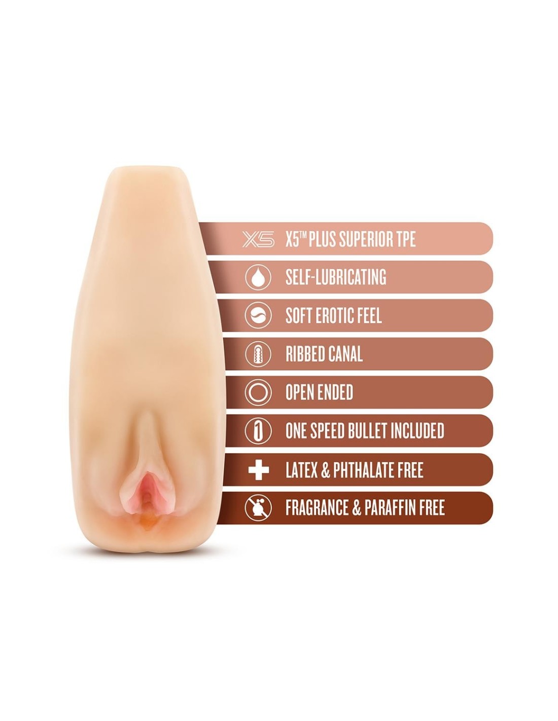 I’m Natasha and I’m ready to deliver pleasure and entice your fantasies. Add a little bit of water or saliva and delight in my self-lubricating abilities as I fit you like a glove. I provide an array of sensations with my ribbed canal and am open ended for easy cleaning. I also come with a 1-speed bullet for powerful vibrations during play. Made of ultra soft X5™ Plus, I’m free of phthalates, paraffins, latex, and I look and feel better than the real thing.