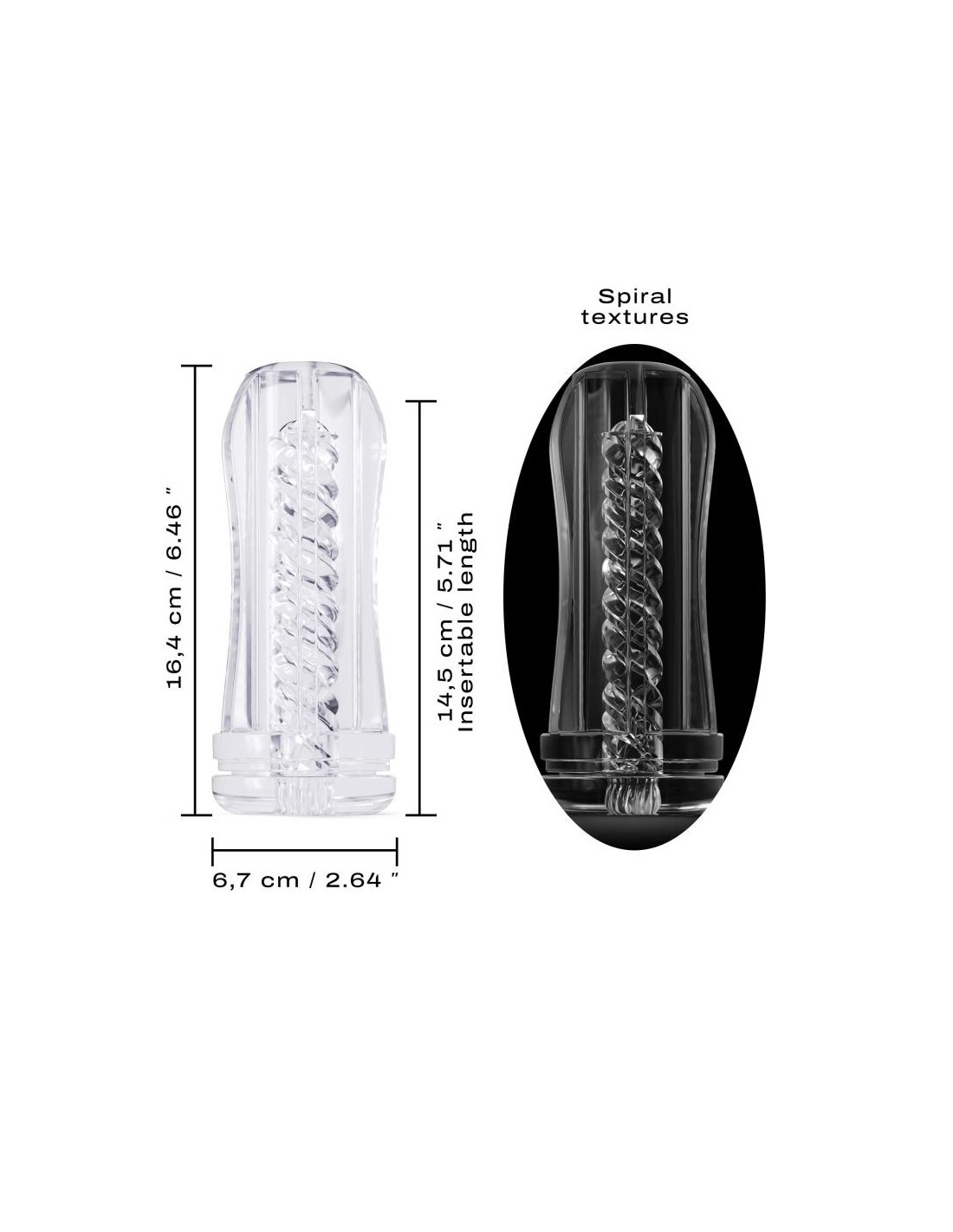 Sperimenta la masturbazione in piena trasparenza! - DEEP BLOW TORNADO: vivi una storia d'amore vorticosa con questa manica completamente a spirale! Manicotto interno per il masturbatore DEEP BLOW, ultraelastico e morbido, per adattarsi alla tua taglia e offrirti un comfort perfetto. Rimovibile e intercambiabile. Può essere usata con o senza la custodia DEEP BLOW per moltiplicare le tue esperienze di masturbazione. E' trasparente, permettendoti di non perdere nessun piacere visivo! VANTAGGI: Riutilizzabile e intercambiabile Materiale ultra morbido ed elastico Superficie strutturata interna Trasparente Comprimibile INFORMAZIONI TECNICHE: Tornado: 14,5 cm / 5,71 pollici Impermeabile IPX7