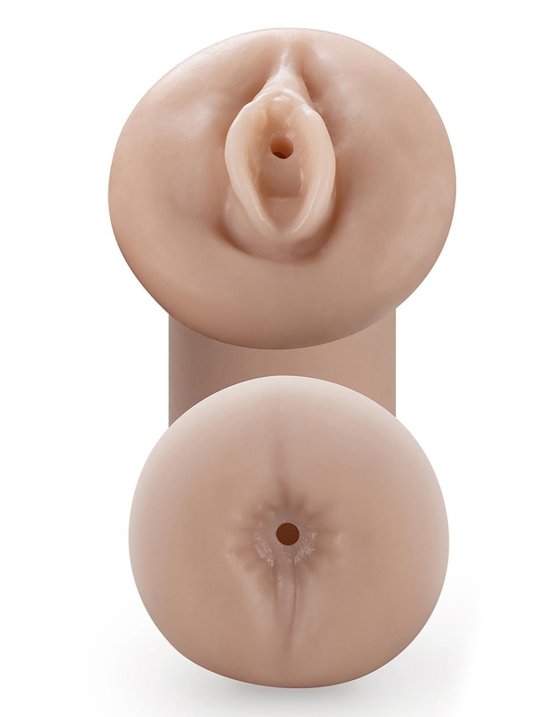 - Ribbed realistic pussy and ass orifices deliver two points of enhanced pleasure