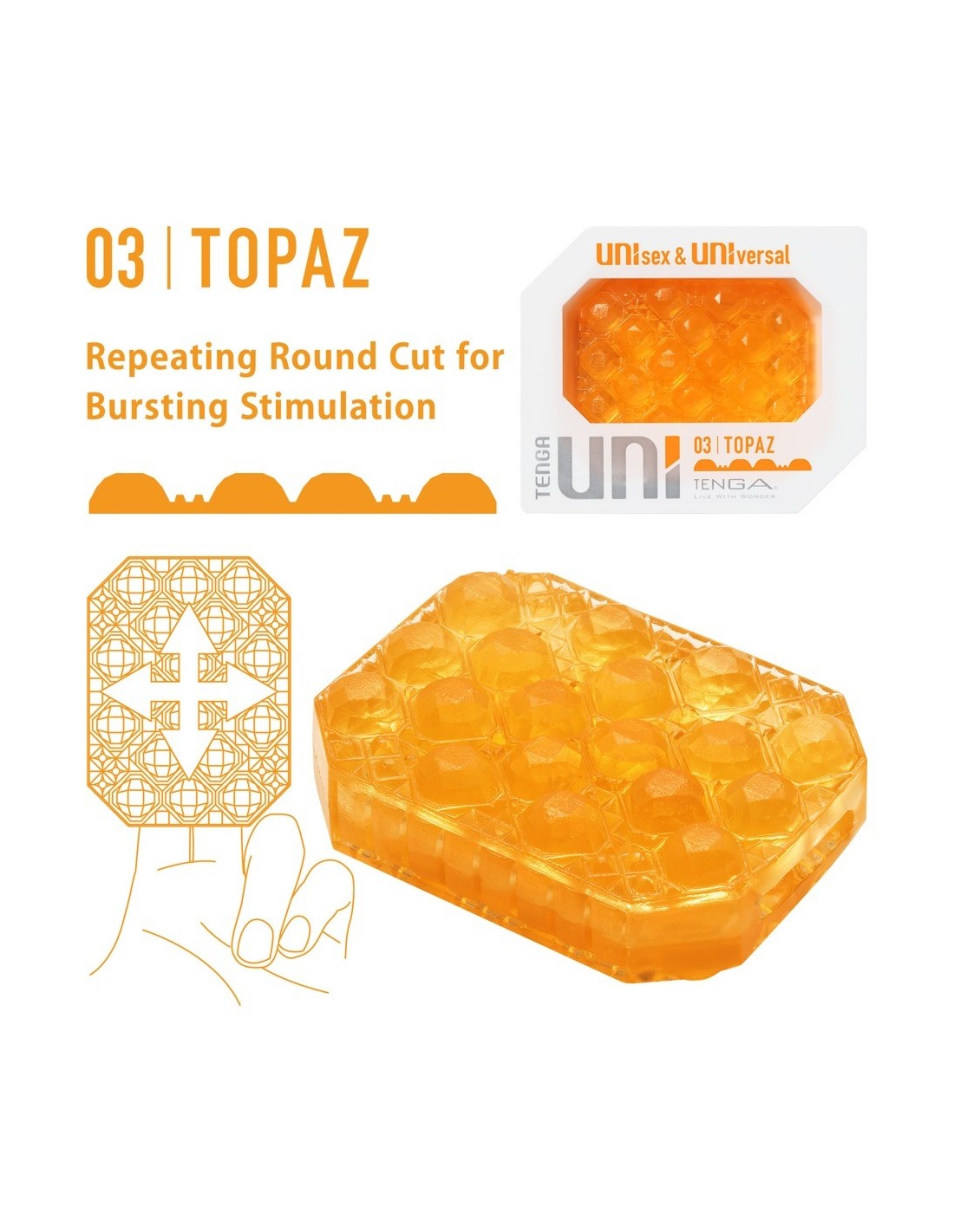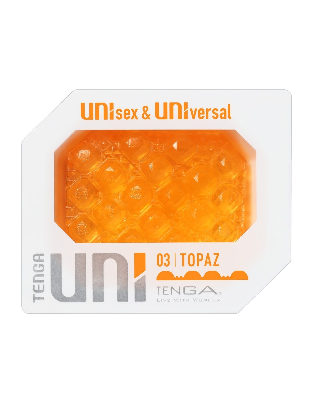 La guaina masturbatrice elastica e morbida UNI Topaz di Tenga può essere utilizzata anche come stimolante guaina per le dita! Un lato è liscio, l'altro ha un'eccitante texture a nodi per un massaggio intensivo, soprattutto del pene e della vagina. La guaina setosa e ultra-flessibile è facile da girare all'interno e può essere usata insieme per fare handjob o ditalini con il lubrificante incluso.