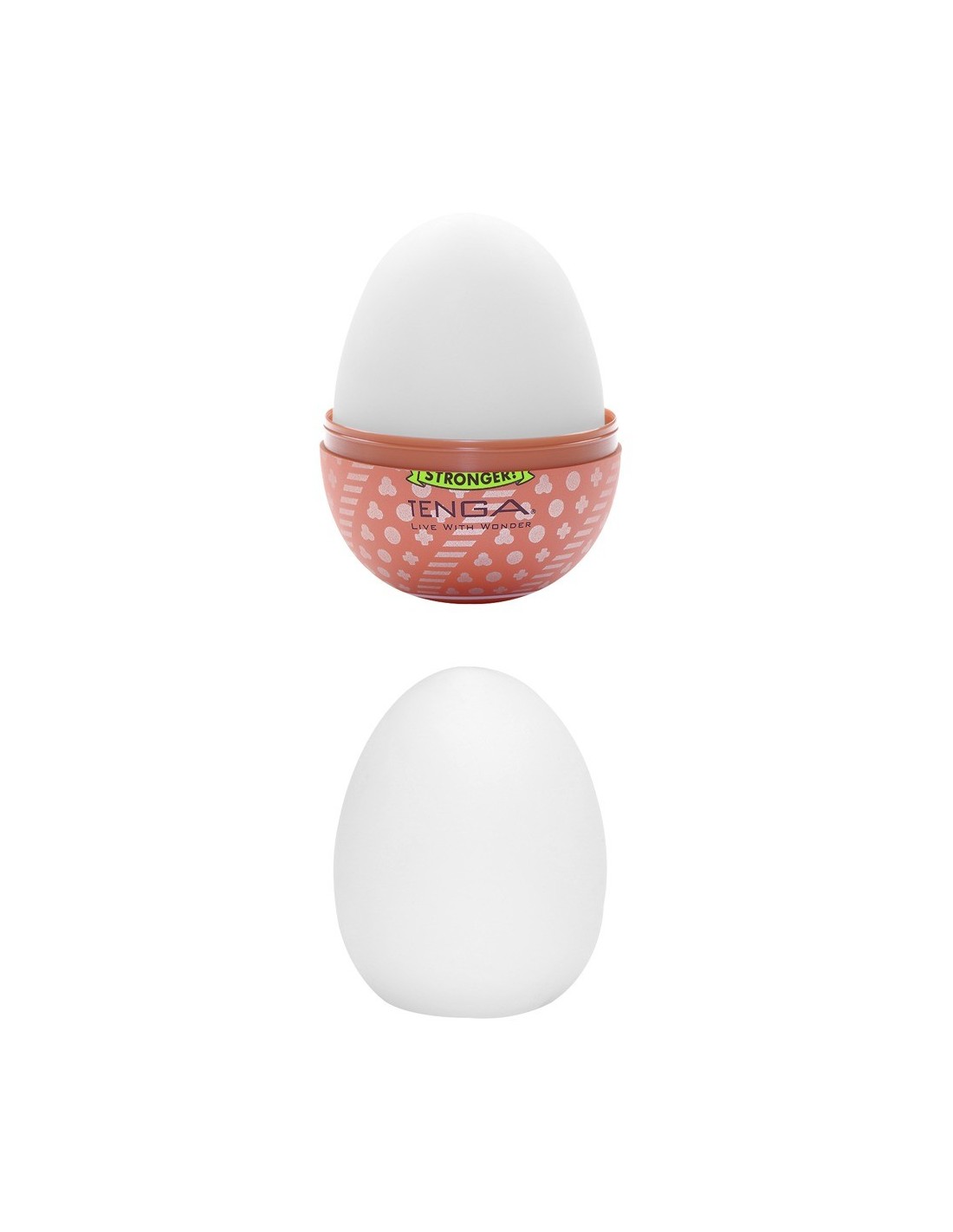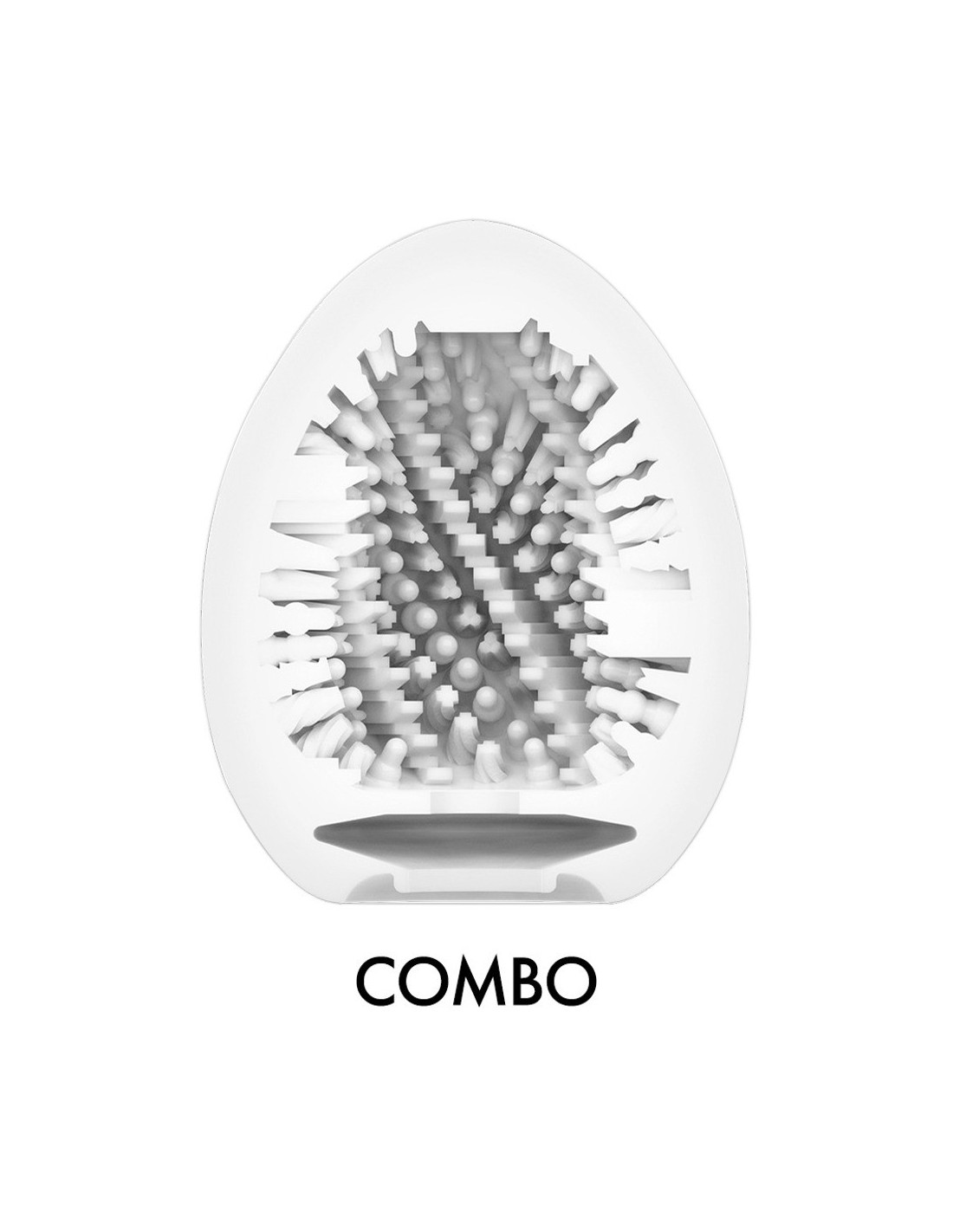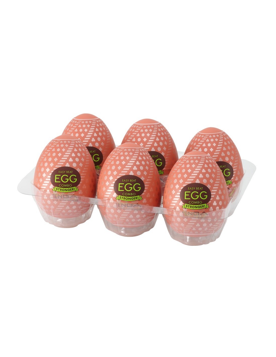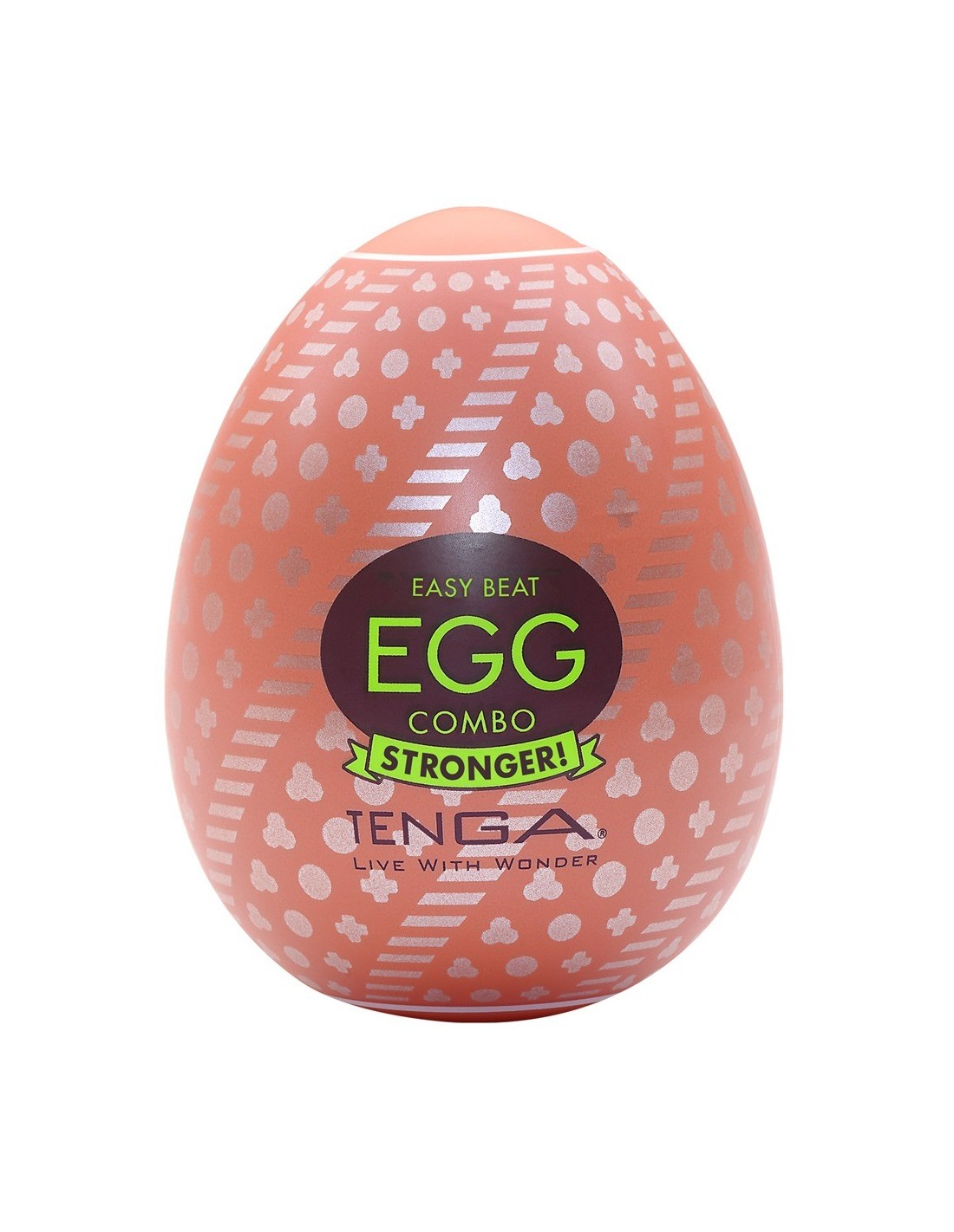 Masturbatore usa e getta Egg Combo Stronger di Tenga con una nuova texture intensiva all'interno per sensazioni particolarmente forti. Il masturbatore ultra-flessibile si trova nella discreta custodia a forma di uovo e viene utilizzato insieme al lubrificante in dotazione durante una sega.