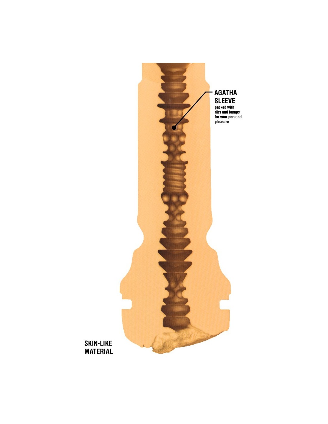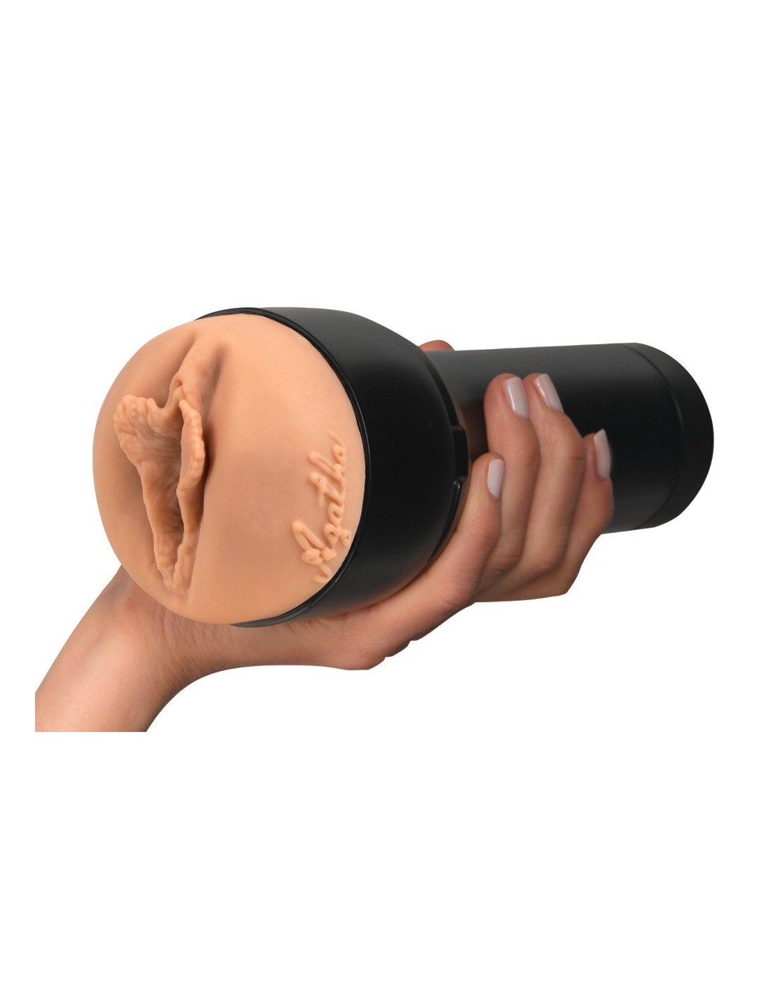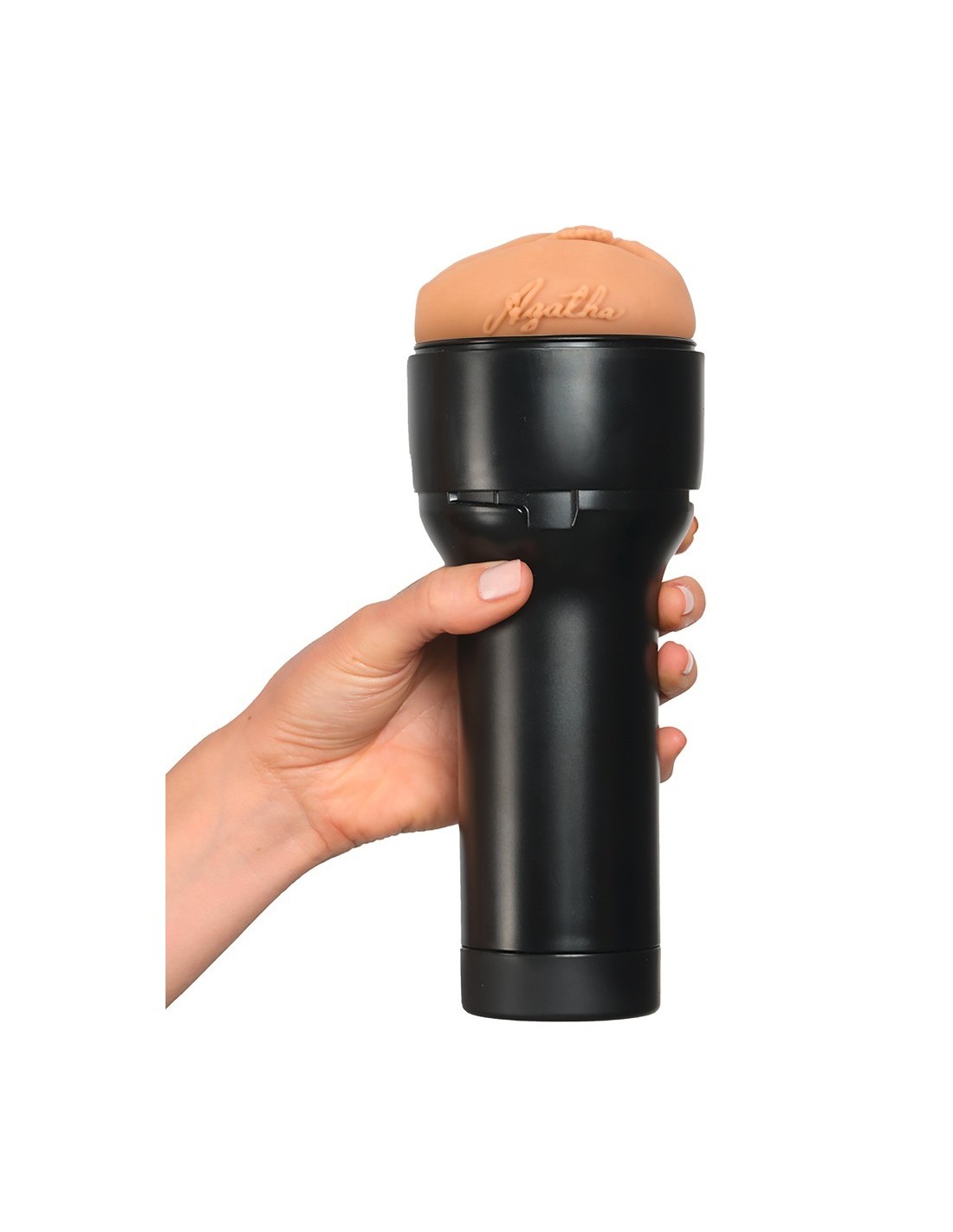 Sentite il masturbatore Agatha Vega di Kiiroo con la vulva originale modellata della star dell'erotismo Agatha Vega. L'interno, strutturato in modo molto vario, si avvicina molto alla vagina di Agatha e garantisce un intenso massaggio durante una sega. La guaina interna in materiale morbido come la pelle è persino firmata con l'autografo di Agatha accanto alle labbra della vulva. La guaina può essere facilmente rimossa dalla custodia antiscivolo e discreta per la pulizia.