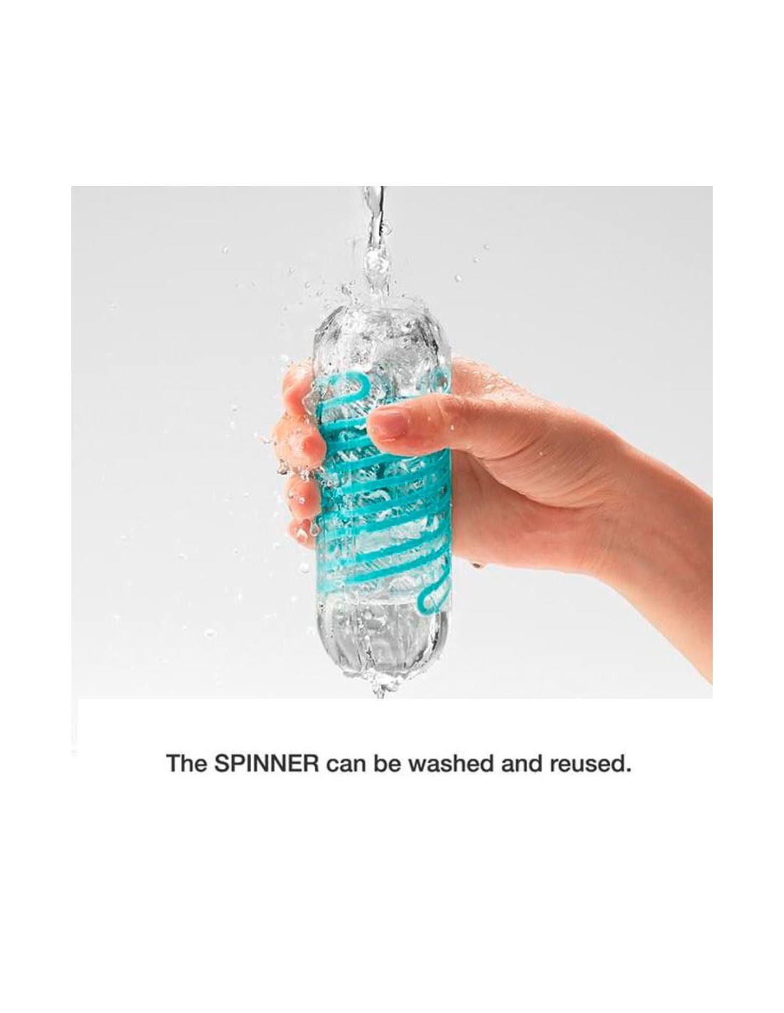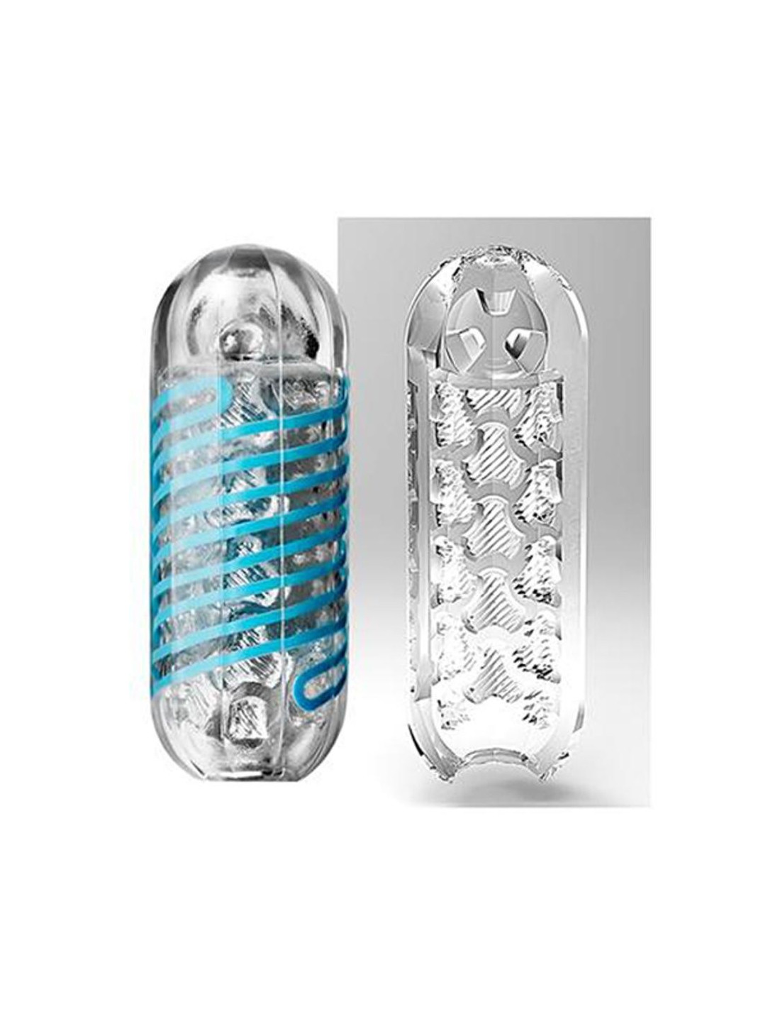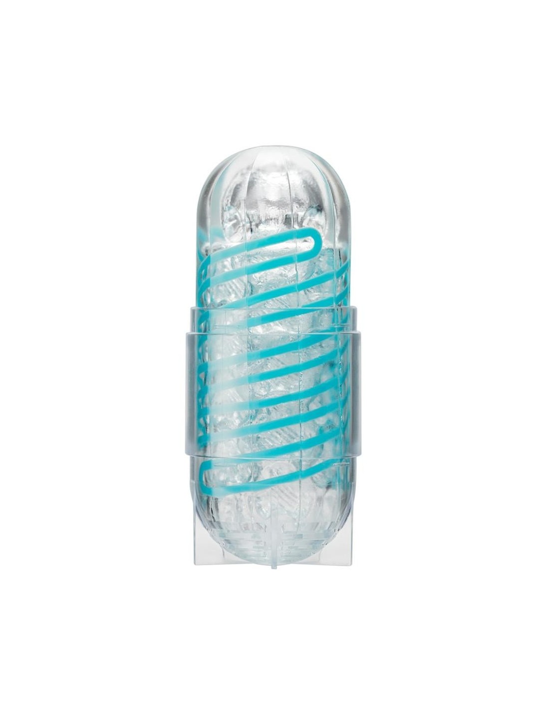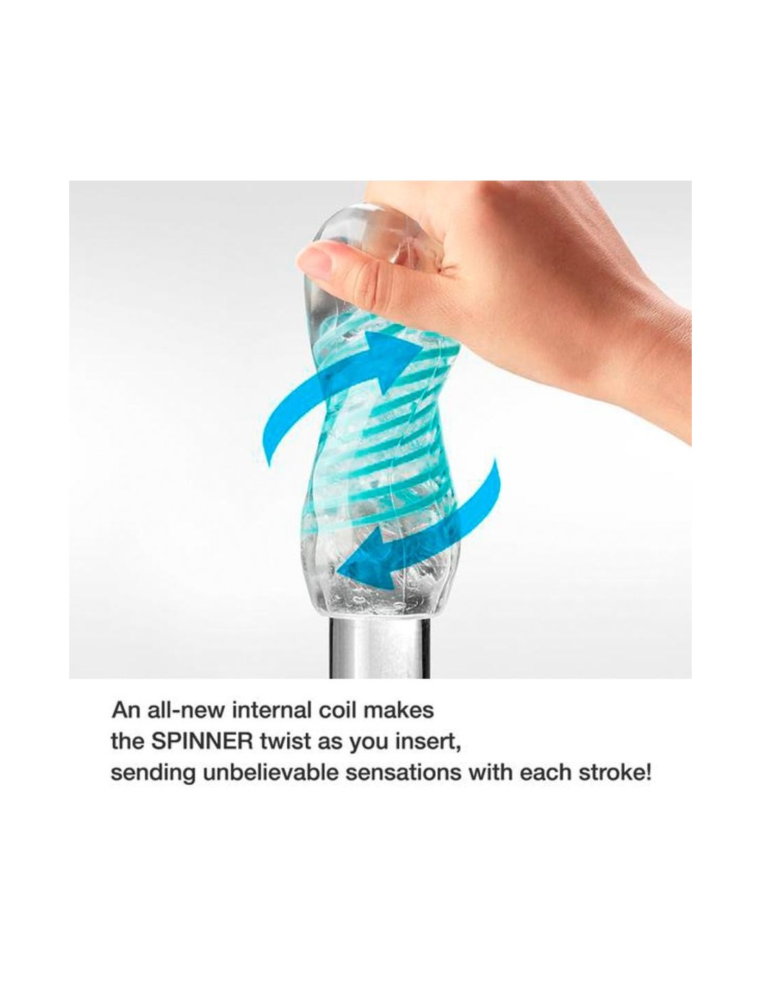 Masturbatore spinner trasparente e riutilizzabile di TENGA con bobina integrata che fa ruotare il masturbatore durante la penetrazione (meccanismo a bobina interna). Canale del piacere strutturato in modo distintamente stimolante con piastrelle geometriche dai bordi morbidi.