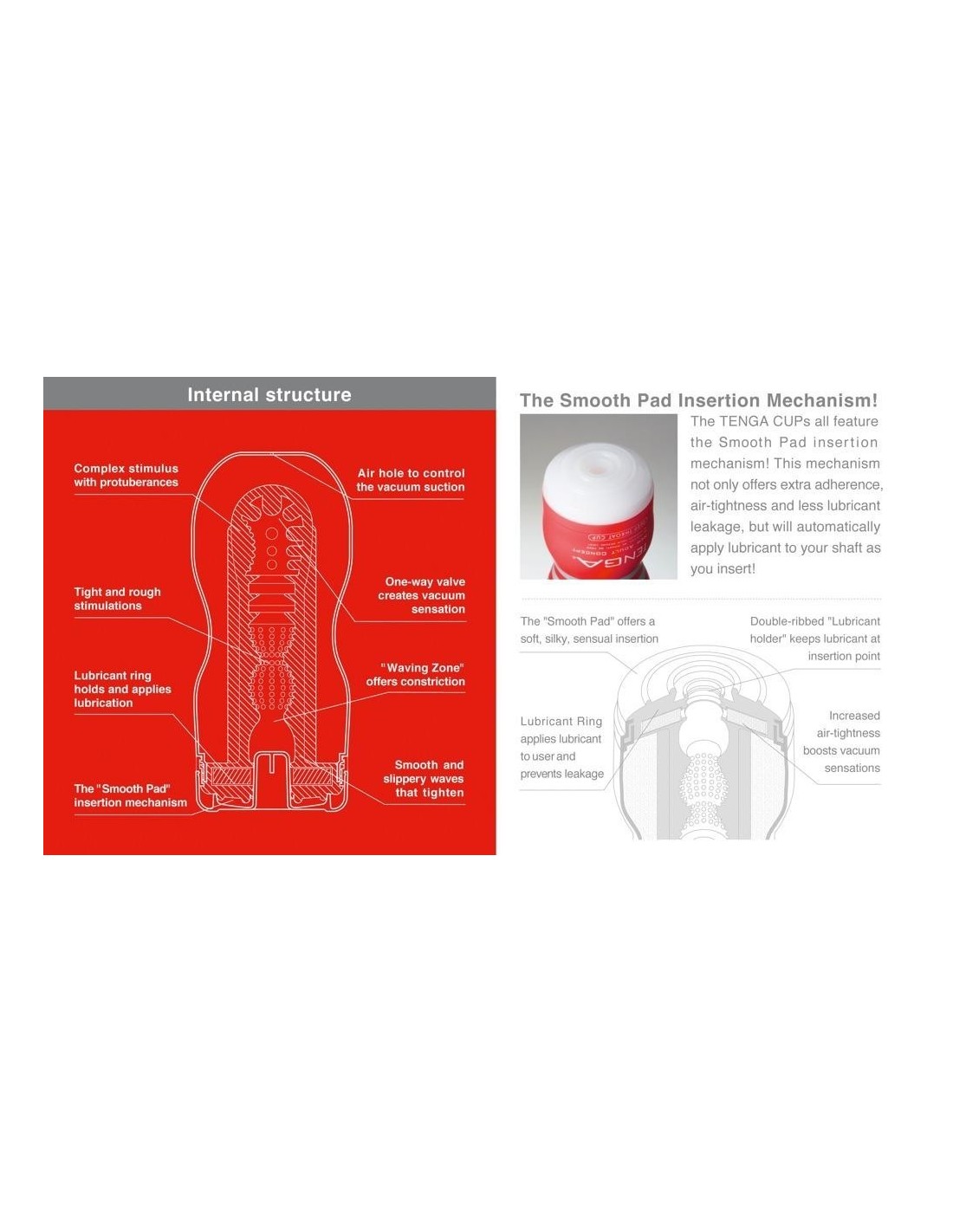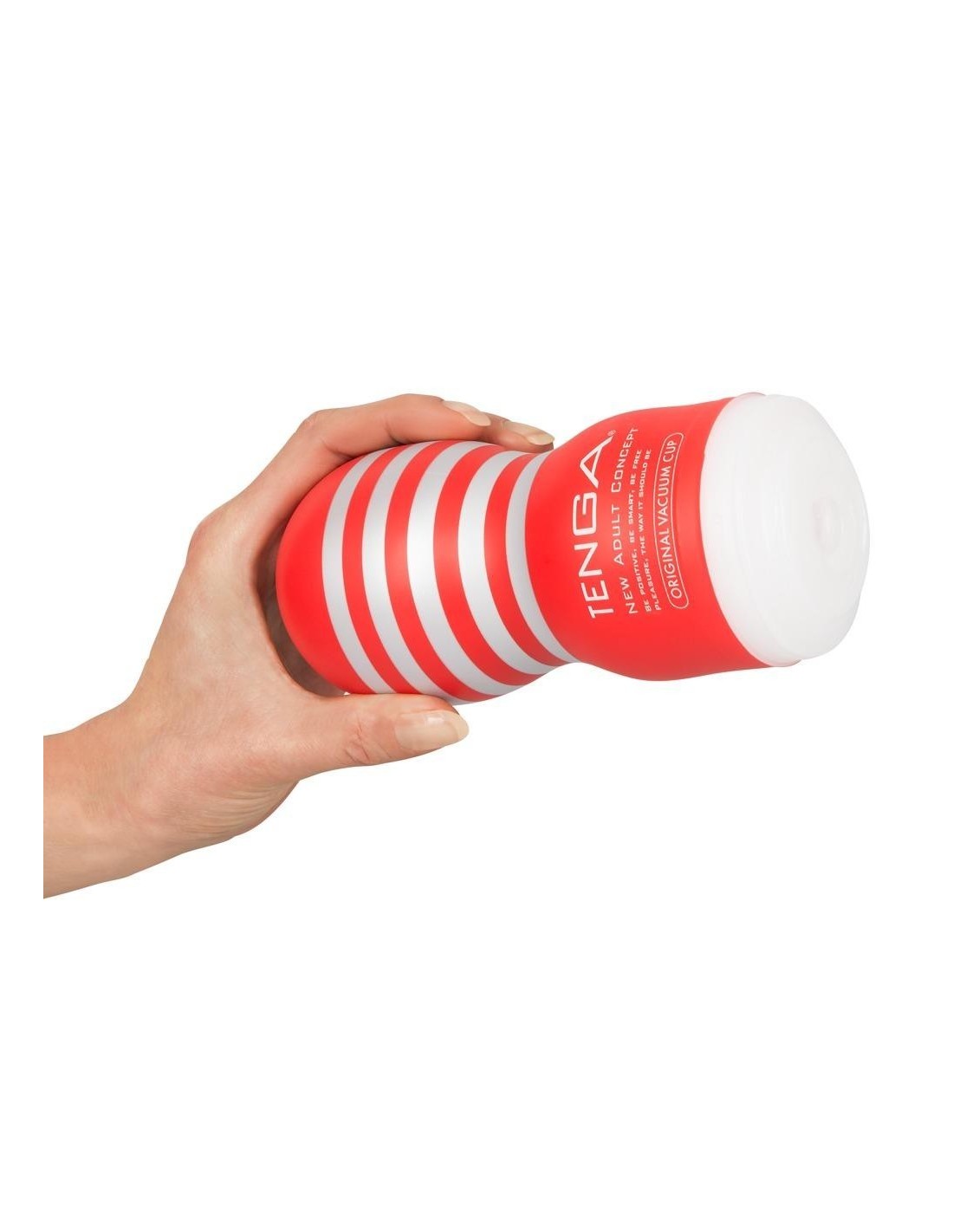 Masturbatore monouso di classe a sé stante Original Vacuum Cup di TENGA. Con un'apertura piacevolmente morbida e un canale del piacere strutturato in modo elaborato con diametri variabili. Il masturbatore contiene anche molto lubrificante per creare la più realistica sensazione di gola profonda possibile. Il foro d'aria alla base del masturbatore può essere chiuso individualmente con un dito e crea un intenso vuoto. Per una nuova forma di soddisfazione maschile.