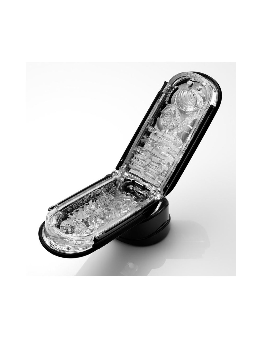 Con 4 strutture nub e groove eccitanti e varie. Incernierato e molto facile da pulire, questo masturbatore è ideale per l'uomo dalla mente tecnica. Con supporto di asciugatura integrato per un uso igienico. L'intensità dell'esperienza della masturbazione può essere aumentata applicando una pressione sulle superfici laterali.