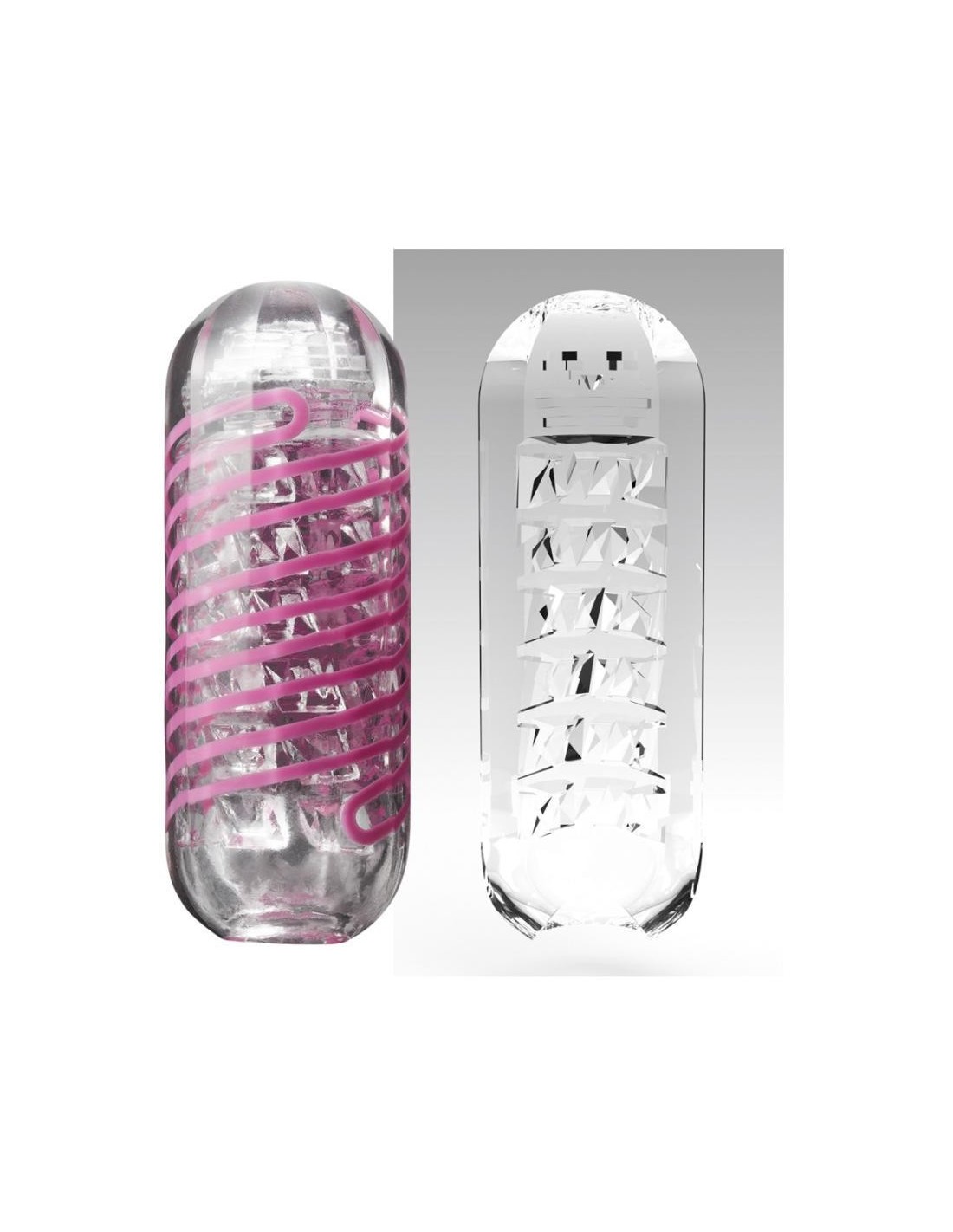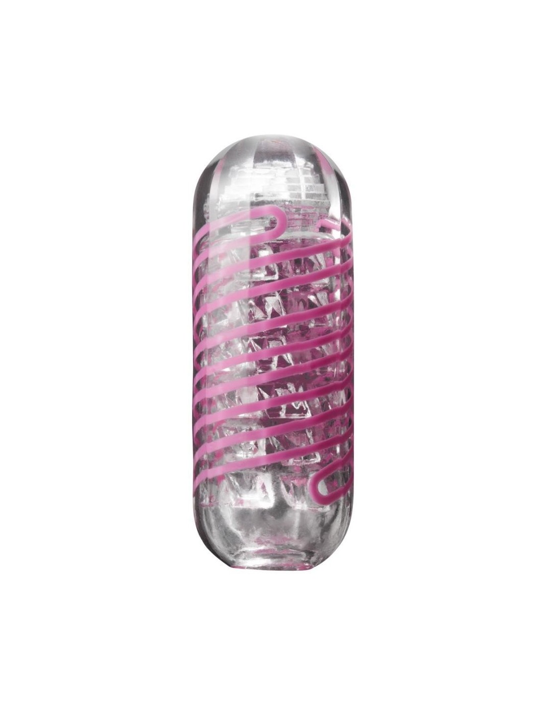 Masturbatore spinner trasparente e riutilizzabile di TENGA con bobina integrata che fa ruotare il masturbatore durante la penetrazione (meccanismo a bobina interna). Canale del piacere strutturato in modo distintamente stimolante con una spirale