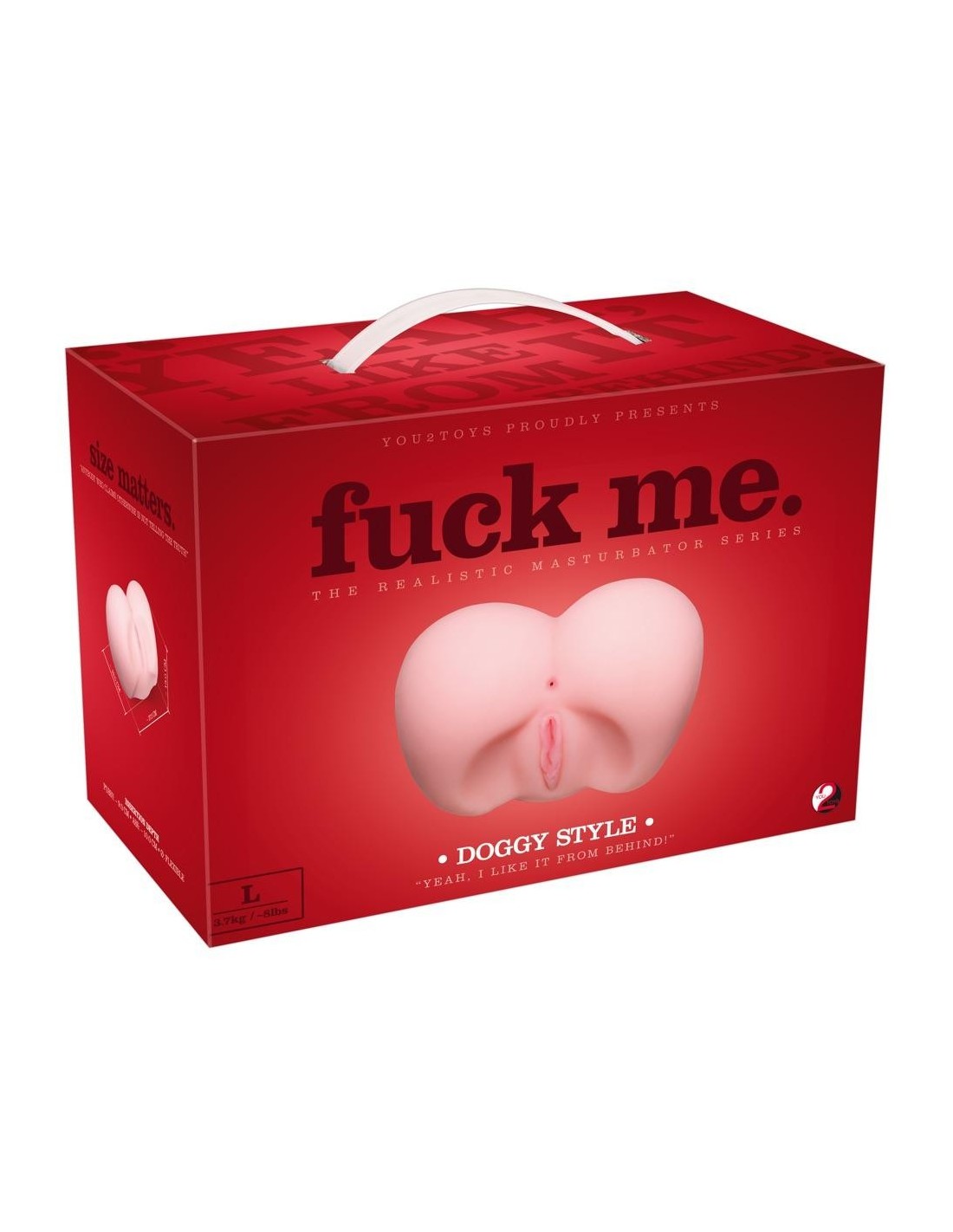 Masturbatore Doggy Style di You2Toys nel design del culo con apertura dettagliata della vagina e dell'ano con canali di piacere aperti su entrambi i lati: canale della vagina sfumato all'interno (9 cm di profondità), canale dell'ano scanalato all'interno (10 cm di profondità).