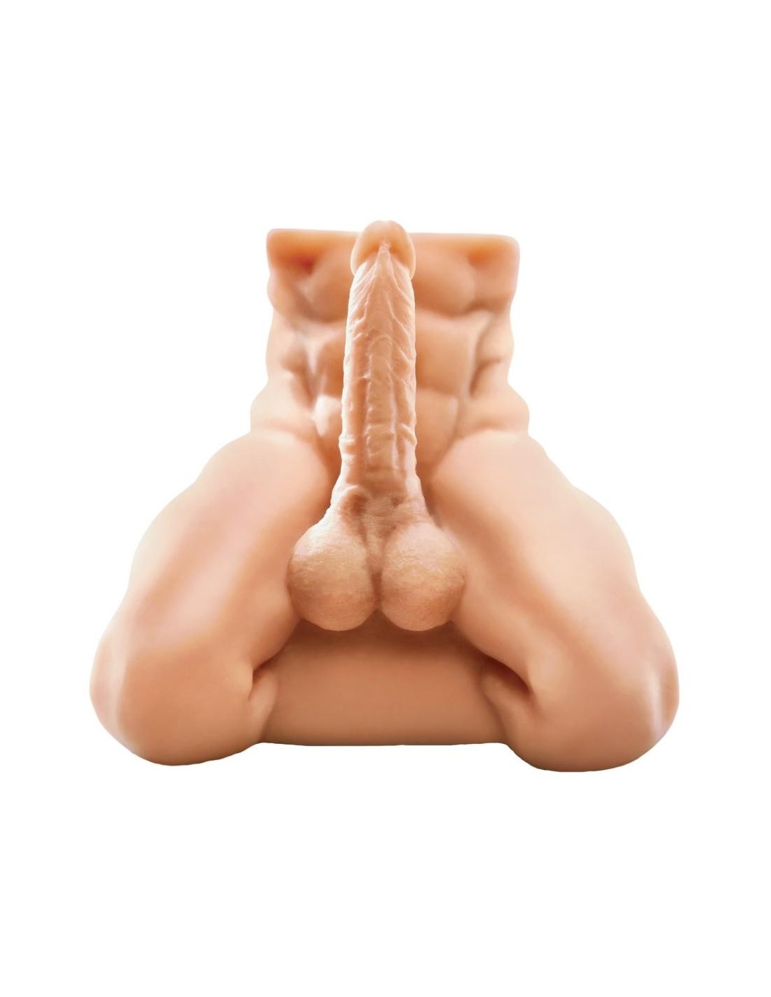 Torso del corpo maschile color pelle in posizione inginocchiata con gambe piegate, confezione da sei, pene maestoso con vene irritabili, testicoli sporgenti per l'impastamento e apertura del piacere anale. Materiale simile alla pelle Fanta Flesh che si adatta perfettamente alla temperatura corporea - per un'esperienza sessuale totalmente realistica! Sono possibili lievi variazioni di colore e di struttura superficiale legate alla produzione.