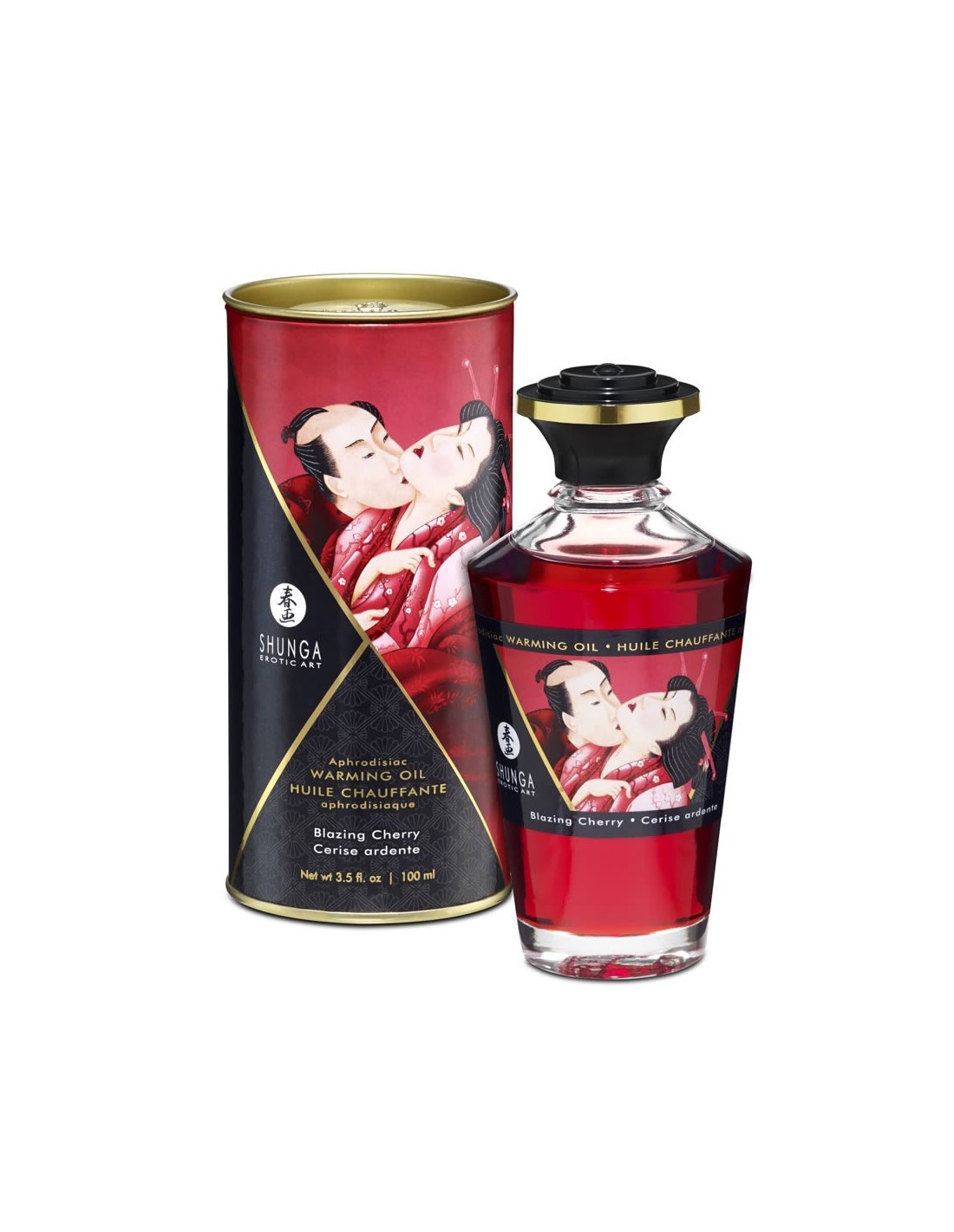 APHRODISIAC OIL - BLAZING CHERRY (Fragranza Ciliegia flambé) Ispirato all'arte erotica giapponese, la gamma di prodotti Shunga si rivolge agli amanti dell'amore. Un vero e proprio invito a viaggiare, queste bellezze eleganti e raffinate sono imbevute di sensualità, eccitazione e passione. Un olio da massaggio edibile di altissima qualità ed esteticamente raffinato firmato Shunga. Quando l'eleganza e l'innovazione si fondono ecco che Shunga è in prima linea con prodotti unici. La confezione è già un invito a lasciarsi andare e a creare la giusta atmosfera per usare questo splendido oggetto del piacere. Shunga Aphrodisiac Oil è contenuto in una boccetta in vetro che lascia intravvedere il colore dell'olio denso e avvolgente, il tutto confezionato in un contenitore in metallo con riferimenti alla cultura orientale. Disponibile in inebrianti profumi, caldi e intensi renerà unici e indimenticabili i momenti intimi della coppia. Crea un'unione magica con l'olio da massaggio edibile Shunga Aphrodisiac Oil. Un po' di musica, luci basse e il tuo partner di giochi pronto a ricevere un massaggio che difficilmente dimenticherà. Metti sulle tue mani la quantità di olio che desideri o versala direttamente sul corpo, anche nelle parti intime, e lasciati andare... Basta una piccola quantità di Shunga Aphrodisiac Oil sulle zone intime per stimolarle: soffiaci su e scopri il suo effetto caldo... da brivido! Confezione da 100 ml.