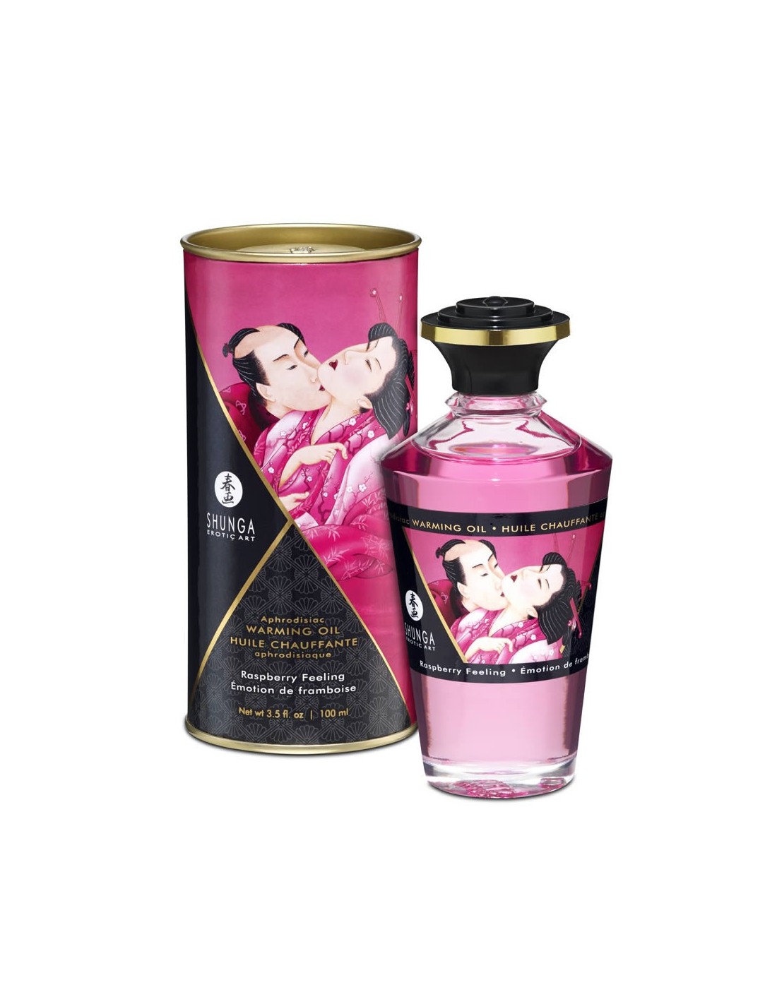 APHRODISIAC OIL - RASPBERRY FELLING (Fragranza Sensazione Lampone) Ispirato all'arte erotica giapponese, la gamma di prodotti Shunga si rivolge agli amanti dell'amore. Un vero e proprio invito a viaggiare, queste bellezze eleganti e raffinate sono imbevute di sensualità, eccitazione e passione. Un olio da massaggio edibile di altissima qualità ed esteticamente raffinato firmato Shunga. Quando l'eleganza e l'innovazione si fondono ecco che Shunga è in prima linea con prodotti unici. La confezione è già un invito a lasciarsi andare e a creare la giusta atmosfera per usare questo splendido oggetto del piacere. Shunga Aphrodisiac Oil è contenuto in una boccetta in vetro che lascia intravvedere il colore dell'olio denso e avvolgente, il tutto confezionato in un contenitore in metallo con riferimenti alla cultura orientale. Disponibile in inebrianti profumi, caldi e intensi renerà unici e indimenticabili i momenti intimi della coppia. Crea un'unione magica con l'olio da massaggio edibile Shunga Aphrodisiac Oil. Un po' di musica, luci basse e il tuo partner di giochi pronto a ricevere un massaggio che difficilmente dimenticherà. Metti sulle tue mani la quantità di olio che desideri o versala direttamente sul corpo, anche nelle parti intime, e lasciati andare... Basta una piccola quantità di Shunga Aphrodisiac Oil sulle zone intime per stimolarle: soffiaci su e scopri il suo effetto caldo... da brivido! Confezione da 100 ml.