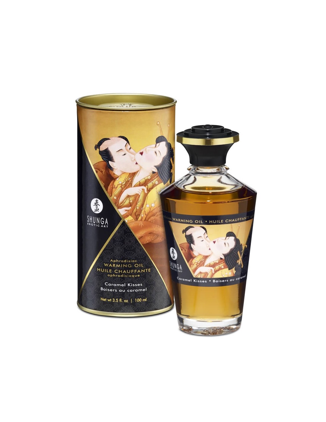 APHRODISIAC OIL - CARAMEL KISSES (Fragranza Caramello) Ispirato all'arte erotica giapponese, la gamma di prodotti Shunga si rivolge agli amanti dell'amore. Un vero e proprio invito a viaggiare, queste bellezze eleganti e raffinate sono imbevute di sensualità, eccitazione e passione. Un olio da massaggio edibile di altissima qualità ed esteticamente raffinato firmato Shunga. Quando l'eleganza e l'innovazione si fondono ecco che Shunga è in prima linea con prodotti unici. La confezione è già un invito a lasciarsi andare e a creare la giusta atmosfera per usare questo splendido oggetto del piacere. Shunga Aphrodisiac Oil è contenuto in una boccetta in vetro che lascia intravvedere il colore dell'olio denso e avvolgente, il tutto confezionato in un contenitore in metallo con riferimenti alla cultura orientale. Disponibile in inebrianti profumi, caldi e intensi renerà unici e indimenticabili i momenti intimi della coppia. Crea un'unione magica con l'olio da massaggio edibile Shunga Aphrodisiac Oil. Un po' di musica, luci basse e il tuo partner di giochi pronto a ricevere un massaggio che difficilmente dimenticherà. Metti sulle tue mani la quantità di olio che desideri o versala direttamente sul corpo, anche nelle parti intime, e lasciati andare... Basta una piccola quantità di Shunga Aphrodisiac Oil sulle zone intime per stimolarle: soffiaci su e scopri il suo effetto caldo... da brivido! Confezione da 100 ml.