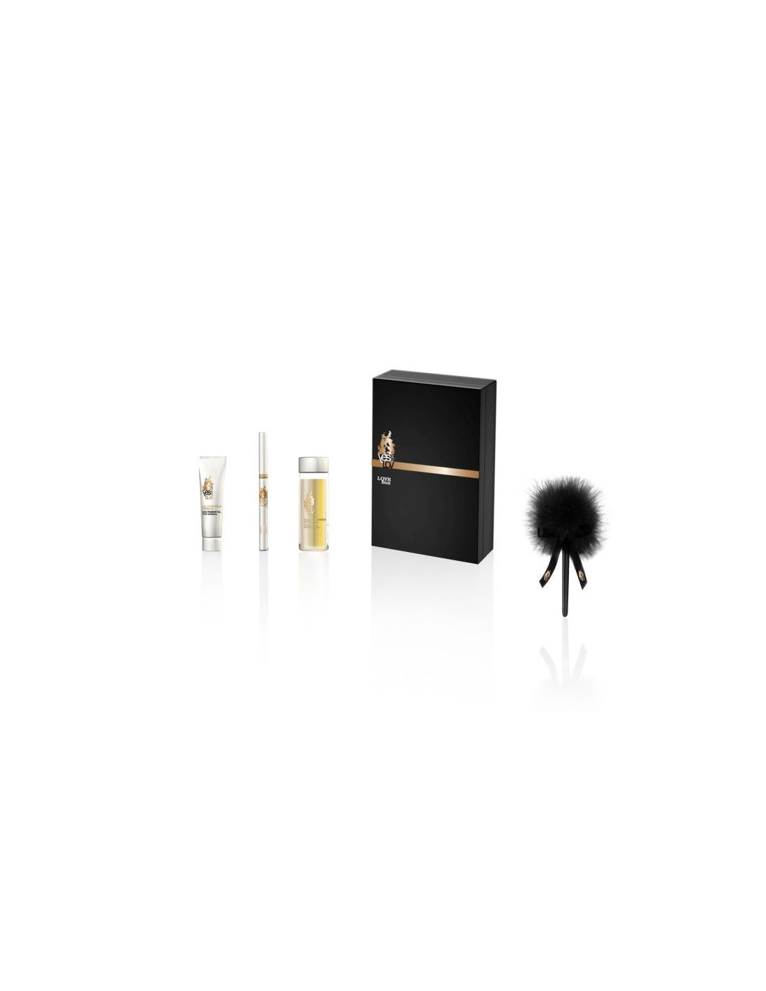 Il piacere non è limitato a un senso o una direzione. È ovunque. Può essere respirato, ascoltato, guardato, toccato e gustato. Condividilo, impostando i tuoi sensi in modalità di avviso insieme. E lascia che le vibrazioni viaggino attraverso tutto il tuo corpo. - Un olio da massaggio stimolante (30 ml). - Un gel eccitante per donne (10 g). - Un messaggio del corpo cattivo. - Una piuma carezzevole. Olio da massaggio stimolante La texture leggera e non grassa non macchia gli indumenti o le lenzuola. Per favorire il relax, è arricchito con oli di frutto della passione, damiana, rosmarino e mandorle dolci, conditi con un pizzico di estratto di zenzero per un delizioso brivido. Gel eccitante per le donne Questo gel agisce proprio alla fonte dell'eccitazione femminile. Prima, durante e dopo. Non c'è niente come una goccia sul clitoride per stuzzicare il desiderio in un brivido di menta piperita. Massaggia delicatamente per creare passione. E scopri le regioni inesplorate del piacere. Messaggi corporei cattivi, sapore di ciliegia Per illuminare il petto e decorare i fianchi. Una conversazione tattile per scrivere mentre sei completamente nudo. Prima di allacciare i vostri corpi insieme. Piuma carezzevole Fagli sopportare le più squisite forme di tortura.