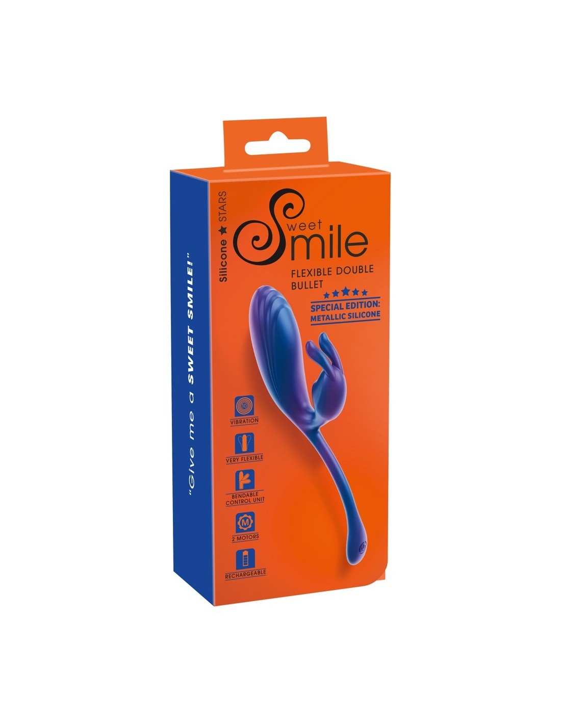 Doppio bullet flessibile di Sweet Smile in un elegante look lucido metallizzato opaco e scintillante. Per una doppia stimolazione perfetta: coccola intensamente la vagina con vibrazioni versatili e contemporaneamente stimola il clitoride all'esterno. L'ovetto vibrante delicatamente scanalato con il coniglietto vibrante è flessibile in ogni sua parte. Ciò significa che il giocattolo in silicone morbido come la seta si adatta perfettamente al corpo e ai movimenti durante il piacere. Può essere utilizzato anche per via anale: il Vibro-Bunny non solo stimola il perineo, ma funge anche da tappo. Massimo divertimento doppio con il massimo comfort!