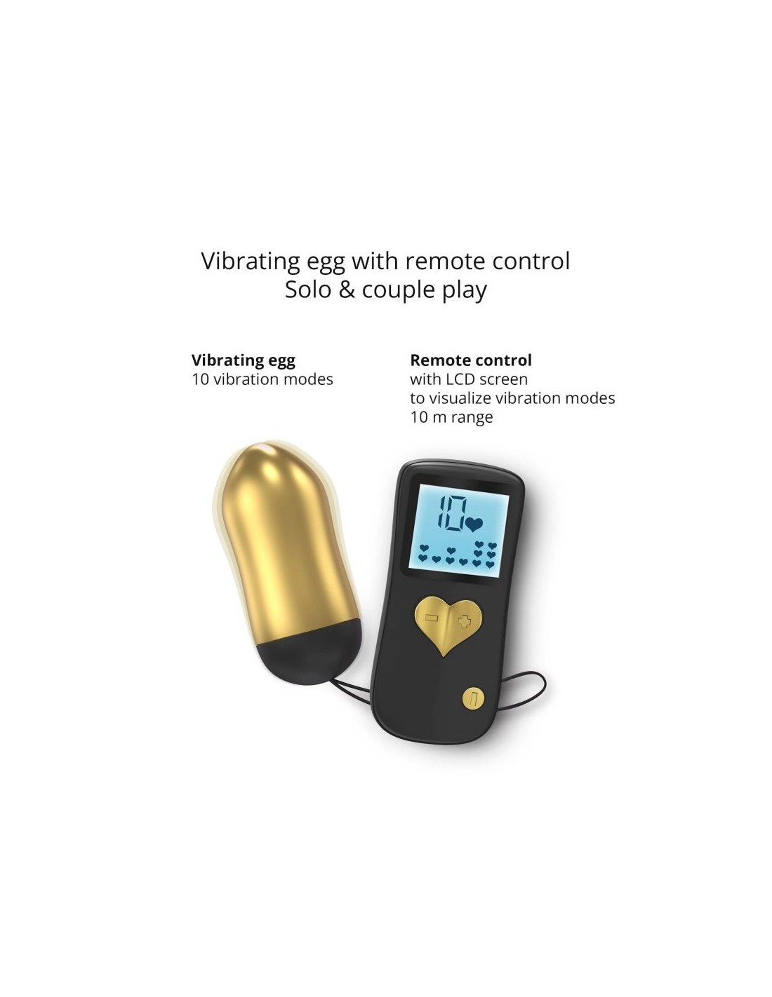 Chi possiede il telecomando è colui che detta le regole! E allora, in segreto, sorprendete il vostro partner con le sue 10 modalità di vibrazione, anche in luoghi inattesi grazie ai 10 metri di portata.