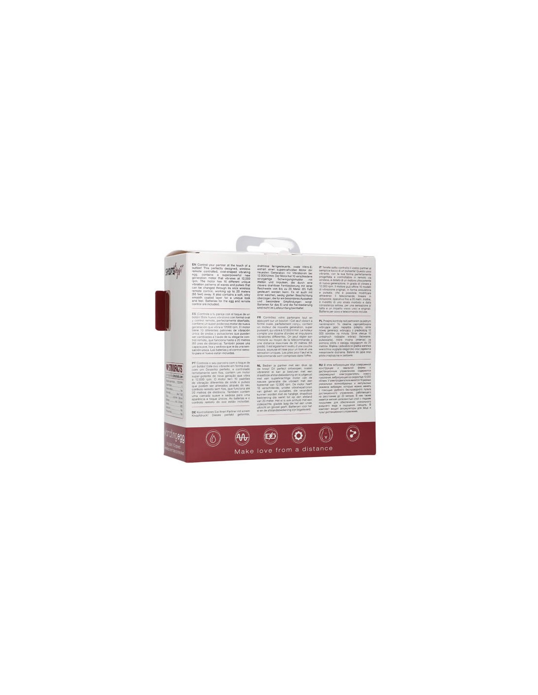 Questo magnifico ovulo vibrante senza fili, è dotato di ben 10 modalità di vibrazione differenti, facilmente intercambiabili attraverso il telecomando wireless, che potrai utilizzare dalla più comoda alla più strana delle posizioni oltre i 20 metri di distanza. L'ovulo è dotato di una superficie liscia e morbida, dandoti un feeling ed un look unico, inoltre è stato realizzato in acciaio inossidabile e dotato di portachiavi per portarlo sempre con te. Le batterie per l'ovulo (2AAA) e per il telecomando sono incluse nella confezione senza costi aggiuntivi. Consiglio: Date il telecomando al vostro partner, lui o lei avranno il controllo della situazione. Dimensioni imballaggio: 13,50 x 13,50 x 5 cm Peso imballaggio: 135 gram Misure Prodotto: 8.30 x 3.40 cm Peso Prodotto: 81.00 gram Diametro Prodotto: 3.4 cm Quantità Motori: 1 Rotazioni: 12000 RPM Modalità Velocità: 10 Livello Rumore: 75 dB Batterie Richieste: 2 Tipo Batterie: AAA Batterie Incluse: Sì Resistente all'Acqua: Sì Anti-schizzo: Sì Privo di Ftalati:Sì Materials: ABS