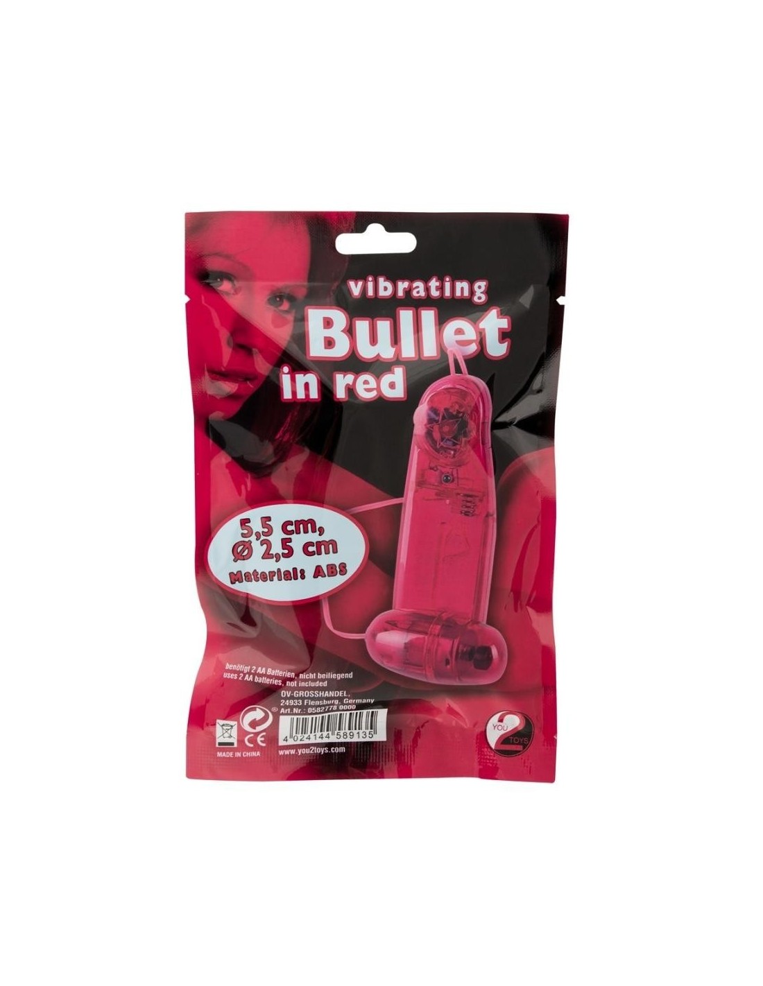 Vibro-Bullet rosso-trasparente per il vostro intermezzo di piacere. Inserire il proiettile vaginalmente e regolare la vibrazione con il telecomando a filo. Una piccola lampada indica l'operazione. Proiettile: lunghezza 5,5 cm, O̸ 2,5 cm. Lunghezza del cavo ca. 64 cm. Materiale: ABS. (Si prega di ordinare le batterie separatamente: 2 x Mignon/AA)