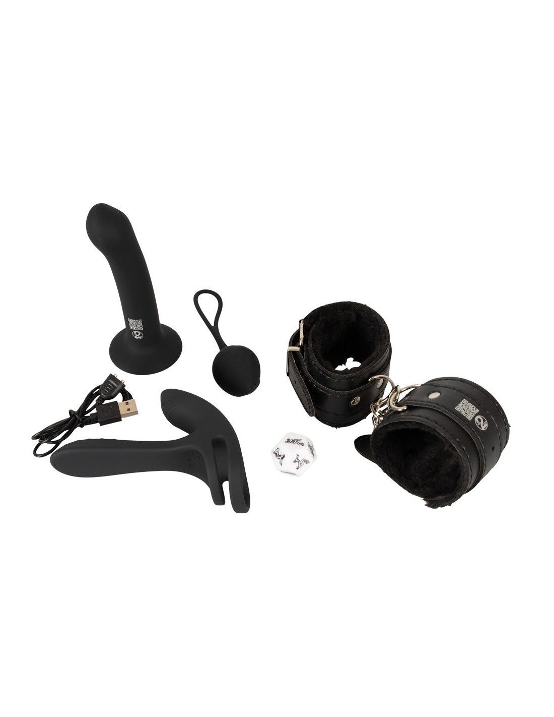 L'esclusivo Starter Set di giocattoli d'amore per coppie insieme di Magic Shiver, con 5 prodotti selezionati di alta qualità, ispira le coppie a lanciarsi in nuove avventure intime. 3 sofisticati giocattoli in silicone, morbide manette e un cubo dell'amore invitano a sperimentare il piacere e a provare intensi orgasmi. Questi giocattoli, facili da usare, sono ideali per un'introduzione giocosa al mondo dei giocattoli intimi. I dettagli: