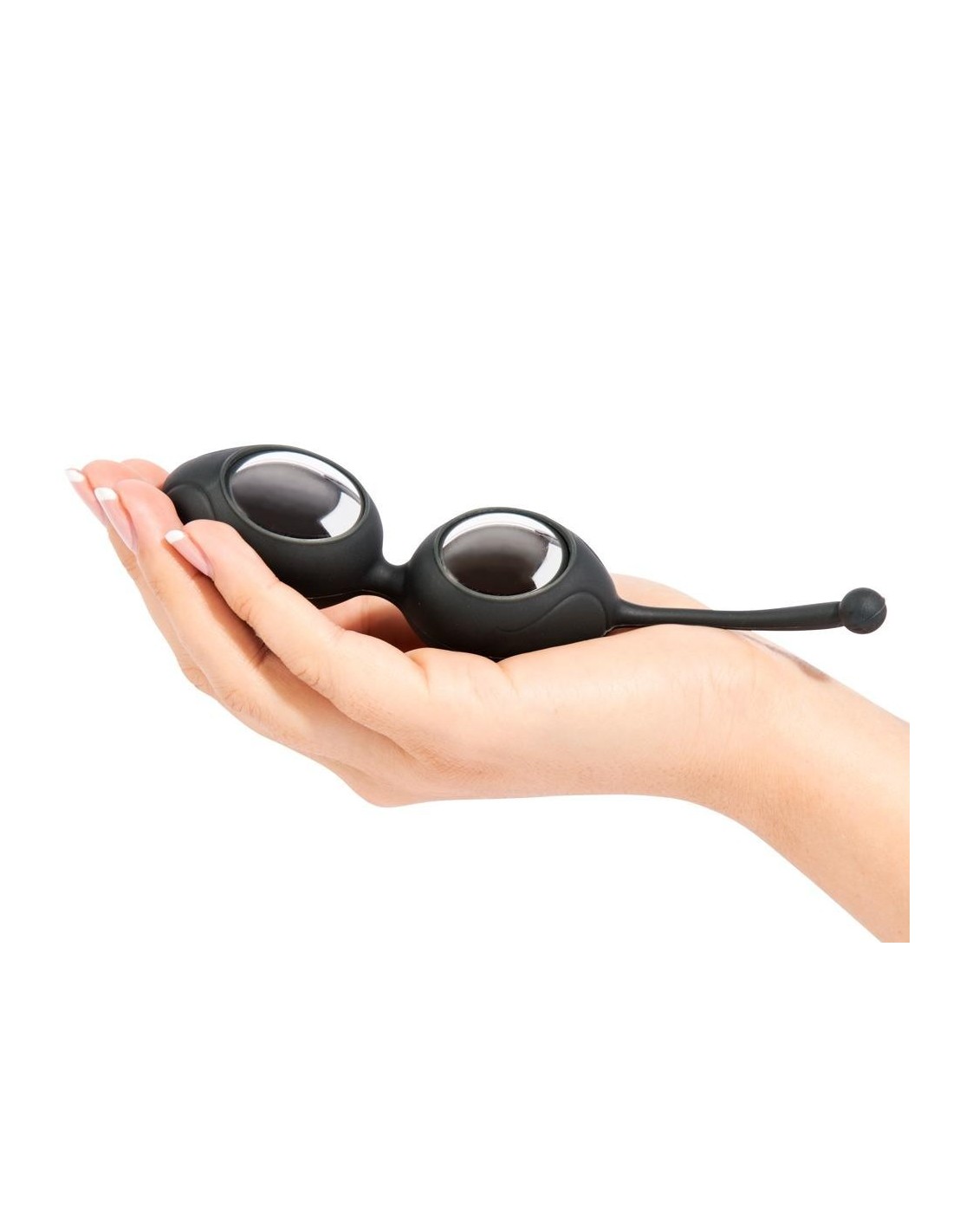 Palline d'amore in silicone liscio, che comprende due palline leggere e scorrevoli. Abilmente stringere e rassodare i muscoli per un maggiore controllo e stimolazione. Include una borsa portaoggetti in argento satinato.