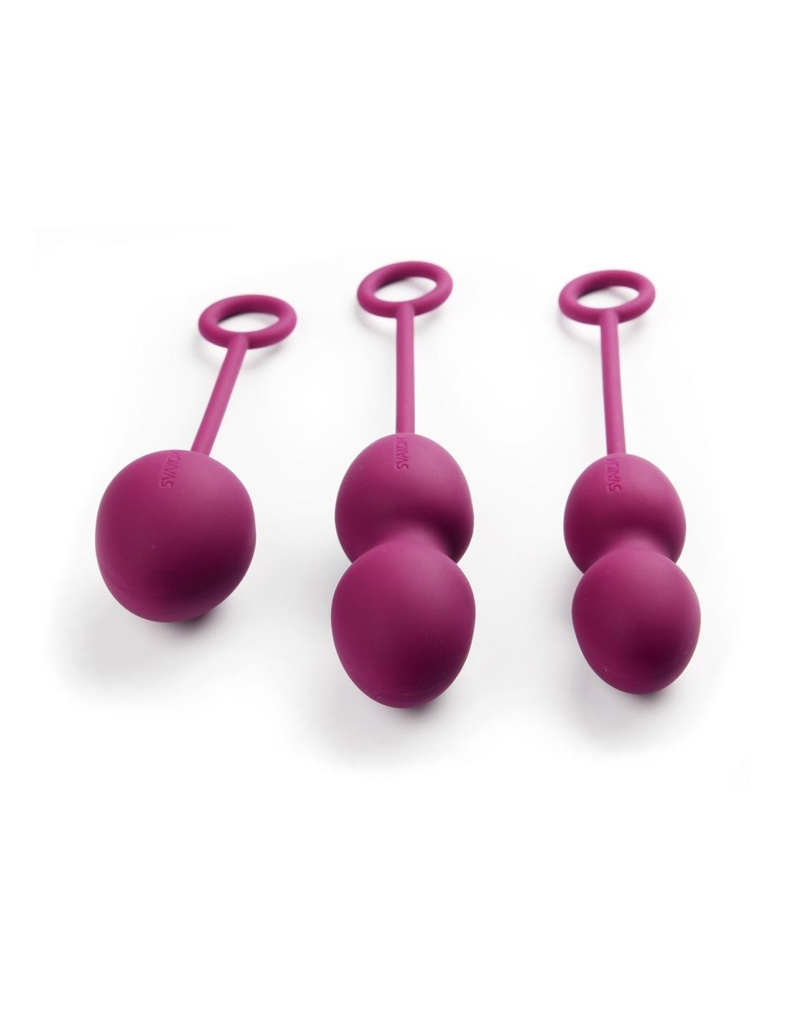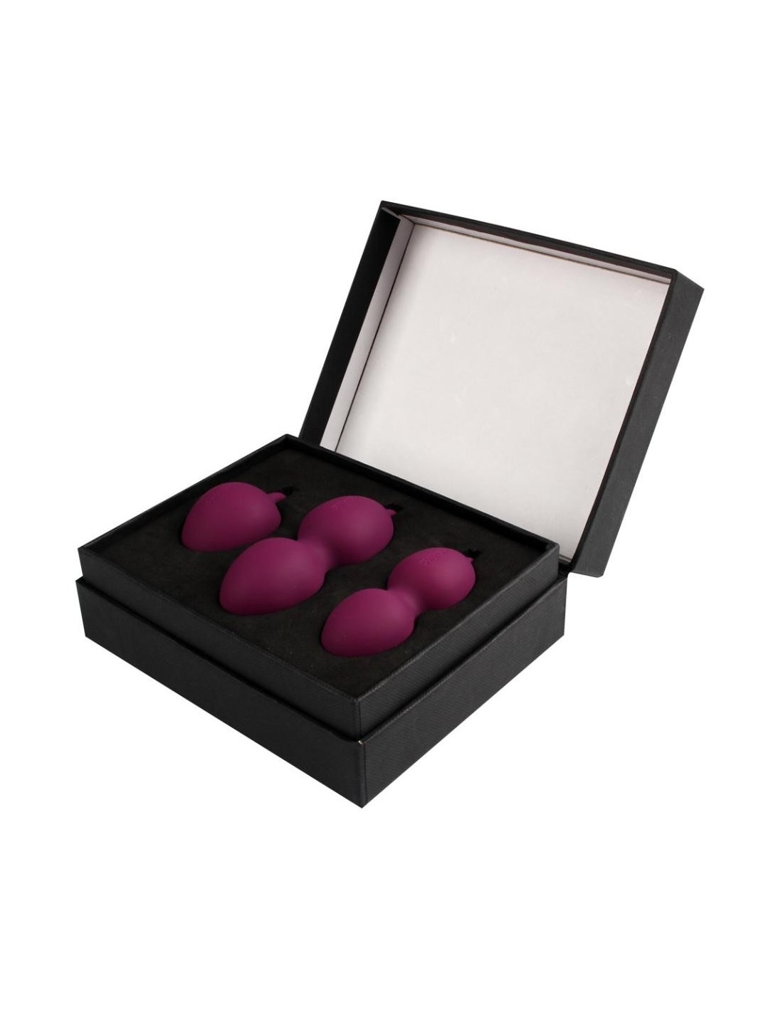 Set di palle d'amore composto da 1 palla singola e 2 duetti di palle per rinforzare il pavimento pelvico. Con 3 fasi di peso successive per un allenamento efficace. Allo stesso tempo il diametro delle palline diventa sempre più piccolo, così che il pavimento pelvico deve lavorare più duramente per mantenere le palline al loro posto. Per raggiungere questo obiettivo, i pesi delle palle rotanti all'interno delle sfere innescano vibrazioni ad ogni movimento, che portano a rafforzare le contrazioni muscolari. Ideale dopo la gravidanza e per la prevenzione dell'incontinenza. I palloncini impermeabili convincono con la loro texture morbida al tatto e setosa e la fascia elastica di ritorno con anello.