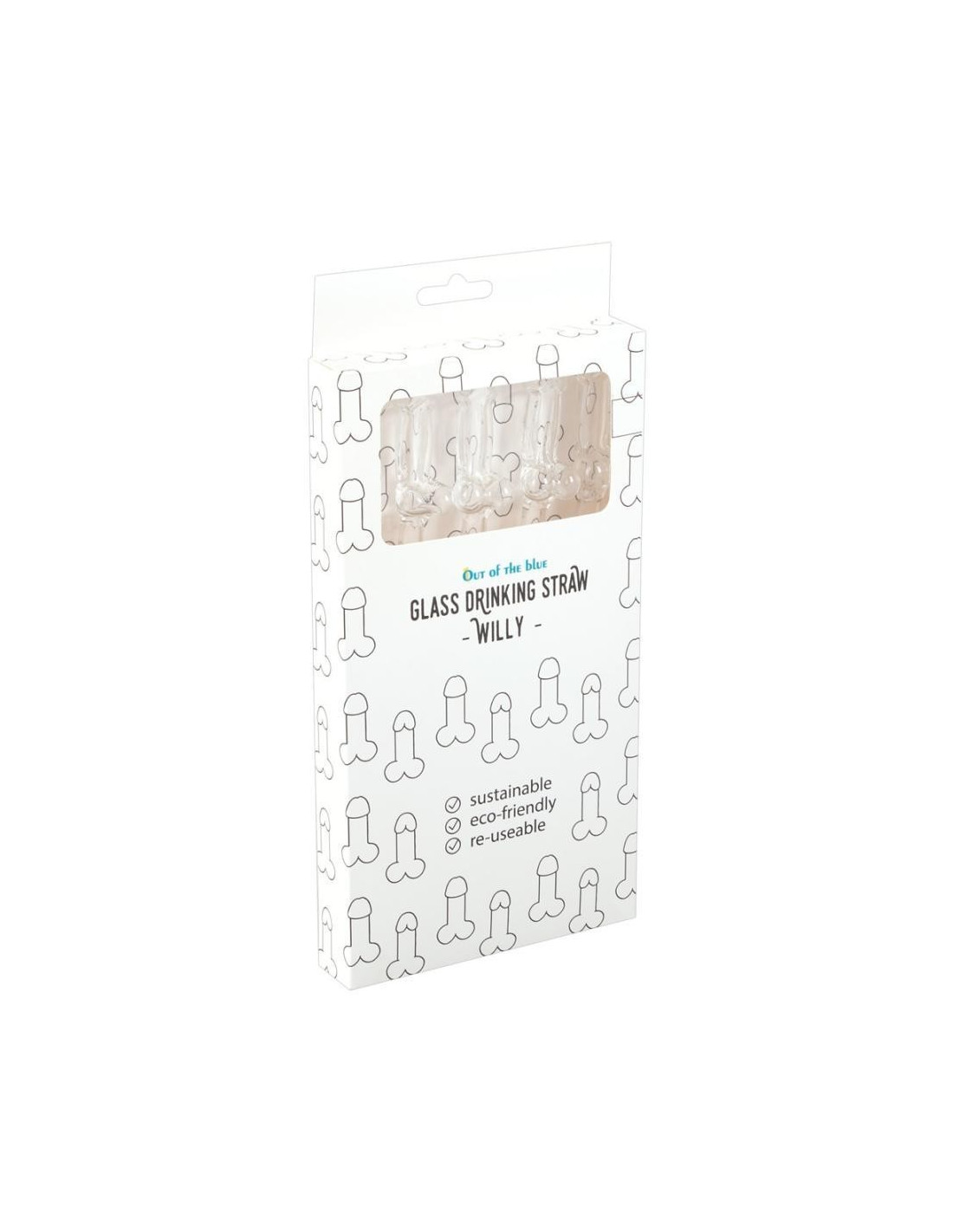 Glass Drinking Straw Willy x 4