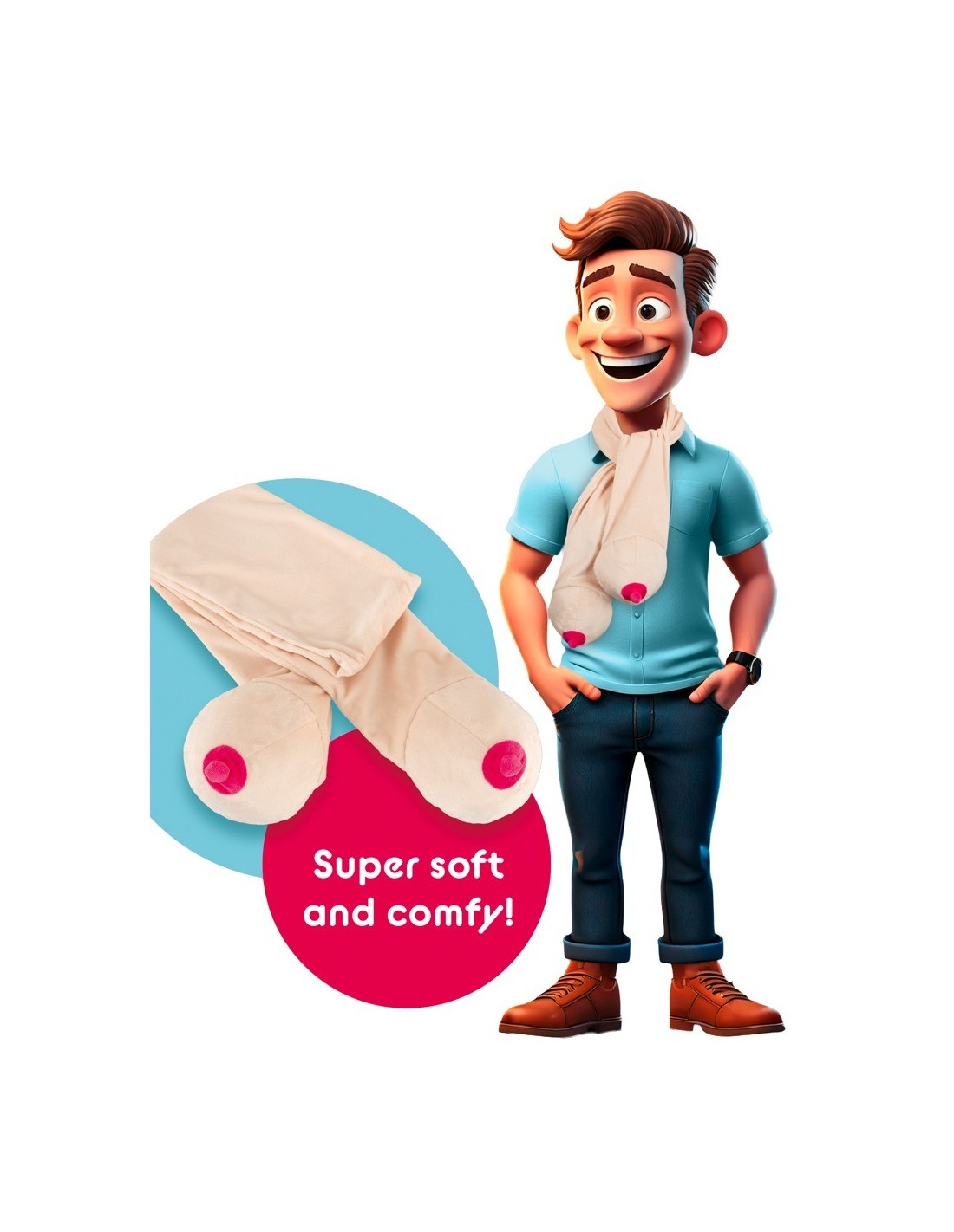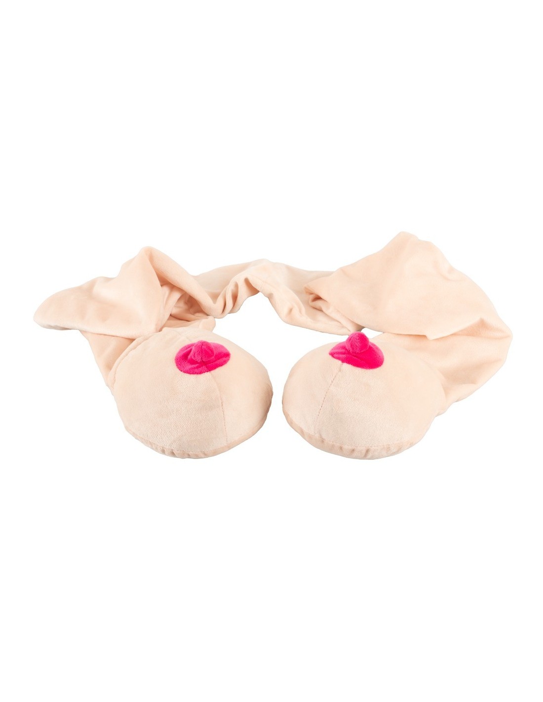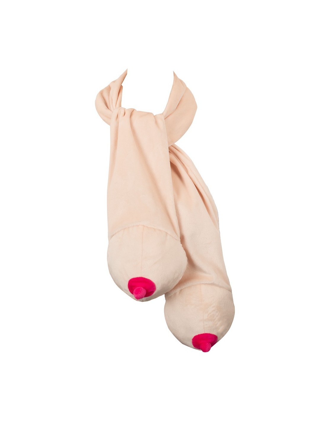 Sciarpa per il busto di colore nudo con seni morbidi e turgidi e un capezzolo di peluche rosa ad ogni estremità. Accogliente, morbido, leggero e soffice. Abbastanza lungo da poter essere avvolto intorno al collo in modo che i seni pendano all'altezza giusta. L'occhiello sfacciato per carnevale, feste, JGA, après-ski e ovunque.