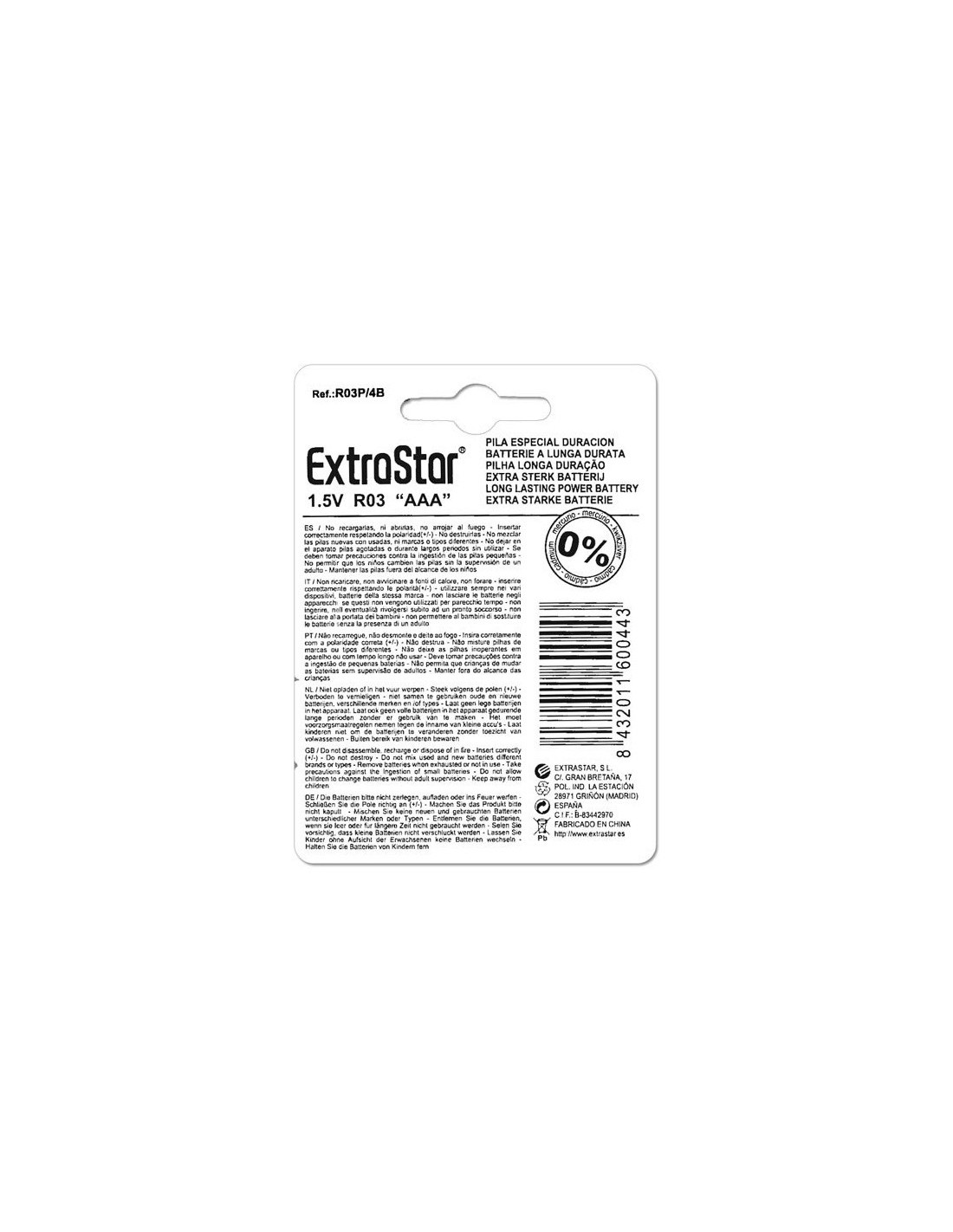 Batterie 1.5V AAA Size 4 pezzi EXTRASTAR