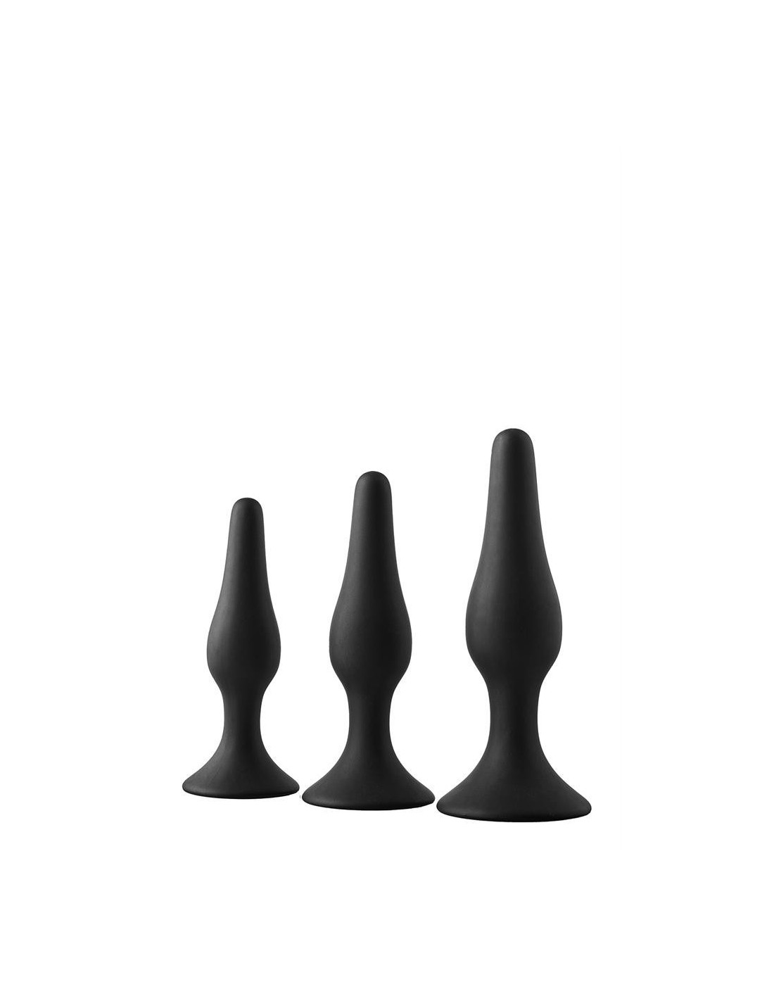 This kit features 3 anal plugs in 3 sizes. Each plug is made of silicone that is soft to the touch. A set with different sizes is perfect for users who wish to vary the sizes of the plugs and for those who want to train from small to big while enjoying anal pleasure. The plugs have a suction cup for hands free use.