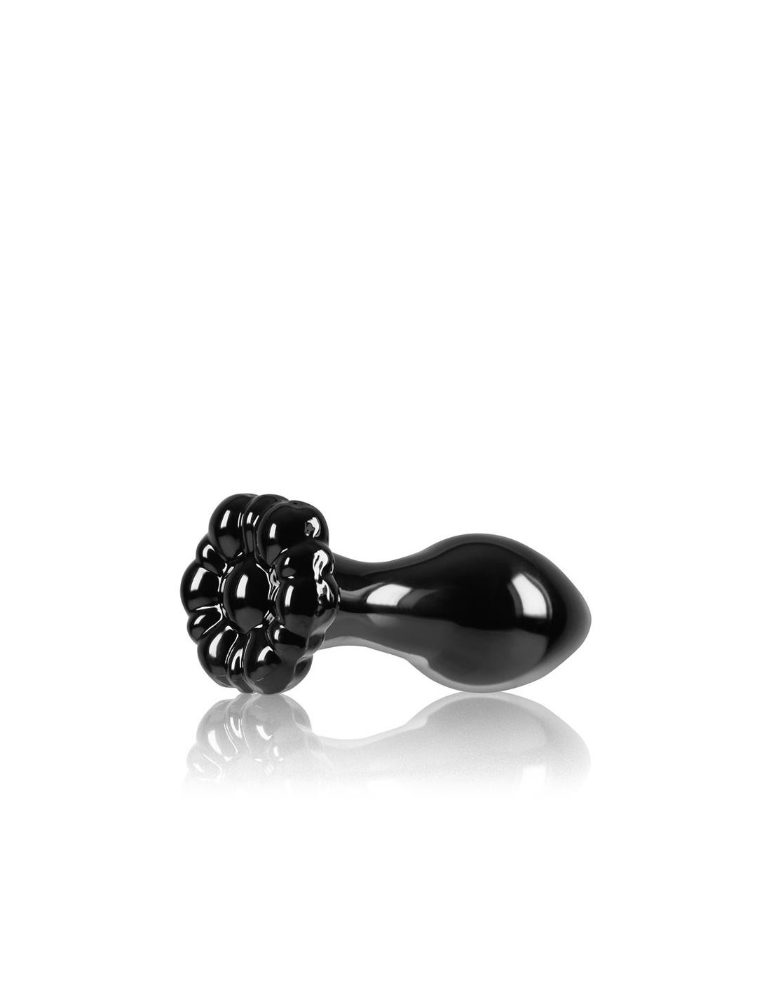 Glass plug with flower shaped base. Crystal Glass is 100% hygienically superior borosilicate glass. Annealed for safety and suitable with all lubricants.