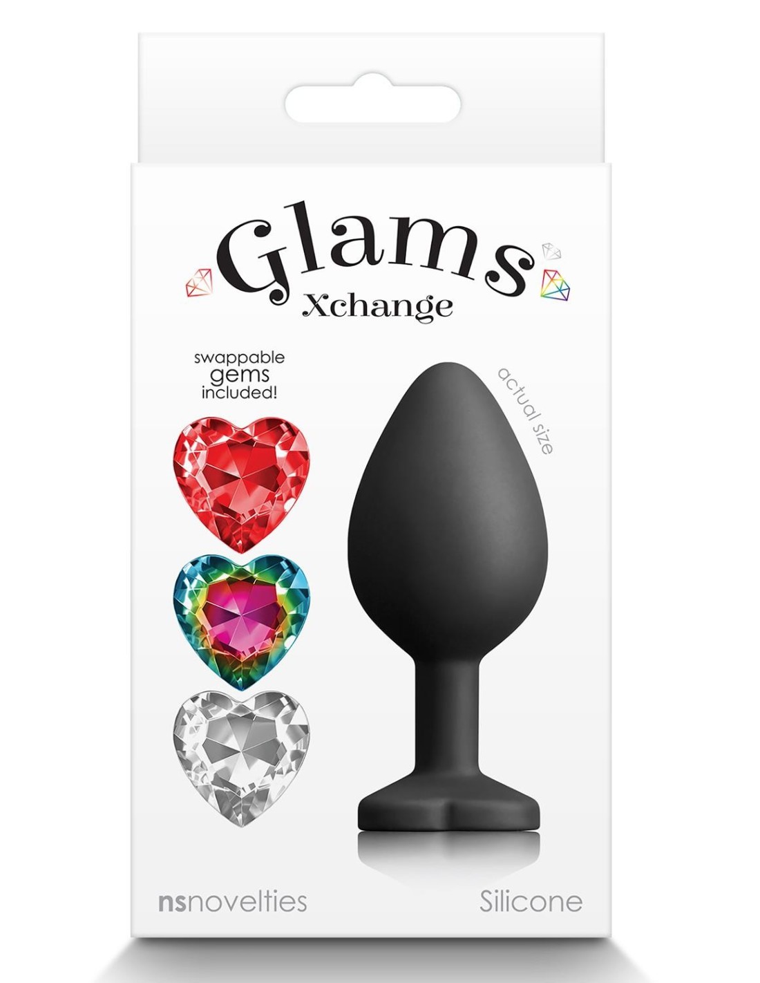 Match your mood and your booty with Glams Xchange. A fashionable accessory to entice and romance. Made from premium grade silicone featuring three interchangeable colorful gems.