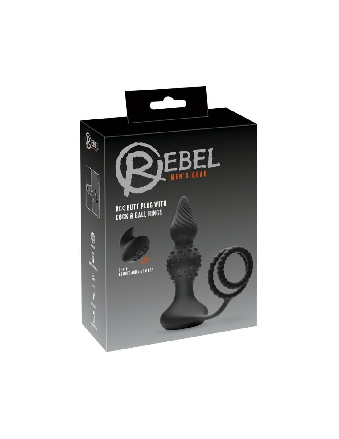 L'RC Butt Plug with Cock & Ball Rings di Rebel è un anello combinato per pene/testicoli con un plug anale vibrante saldamente bloccato con supporto che può essere comodamente controllato tramite l'intelligente telecomando - con una portata fino a 10 metri, anche dal vostro partner.