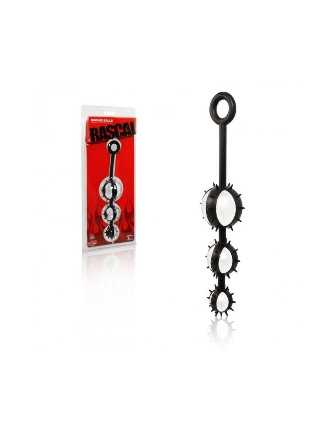 Rascal™ Toys Savage Balls • Tre sfere in vetro soffiato a mano, di dimensioni graduate • Dimensioni delle sfere: 4,5 cm, 3 cm, 2,5 cm • Le sfere sono tenute insieme da un cinturino in silicone ultra igienico • Morbide punte in silicone sul cinturino per una maggiore sensibilità • Cinturino in silicone rimovibile per una pulizia accurata • Vetro e silicone diventano scivolosi se lubrificati • Entrambi i materiali sono resistenti, non porosi e privi di ftalati • Impermeabili