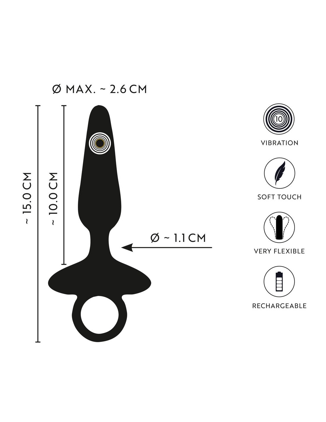 Il motore potente e silenzioso offre 10 potenti modalità di vibrazione. Queste possono essere facilmente controllate premendo un pulsante sul toy e aprono un'ampia gamma di possibilità per eccitanti esperienze anali.