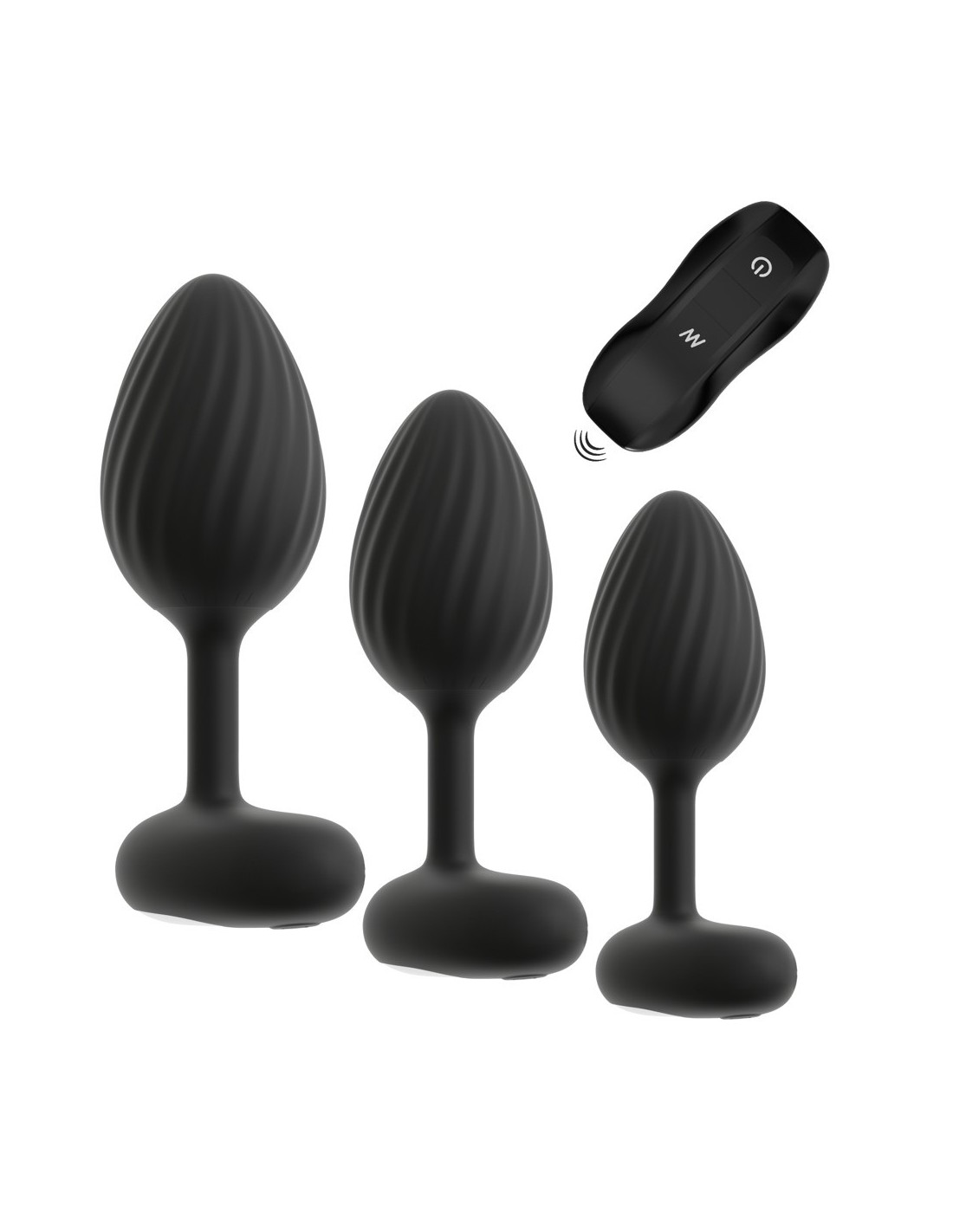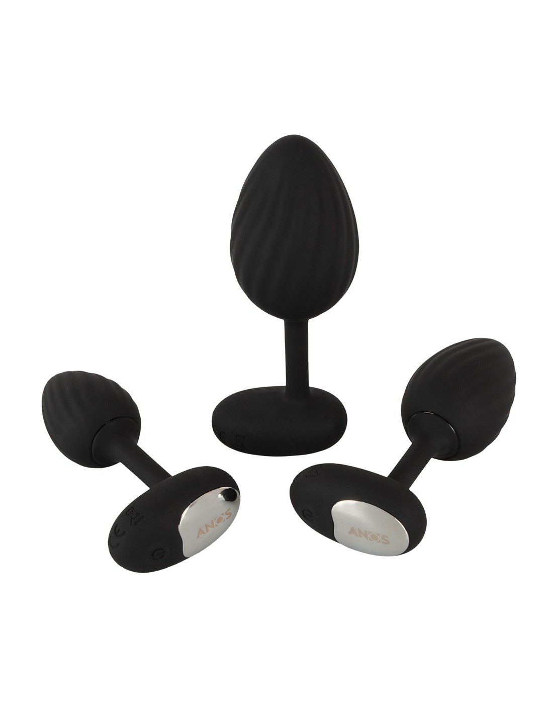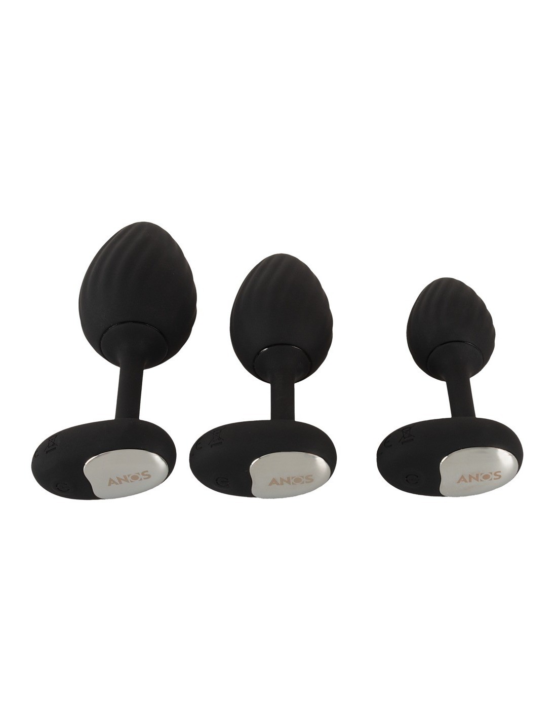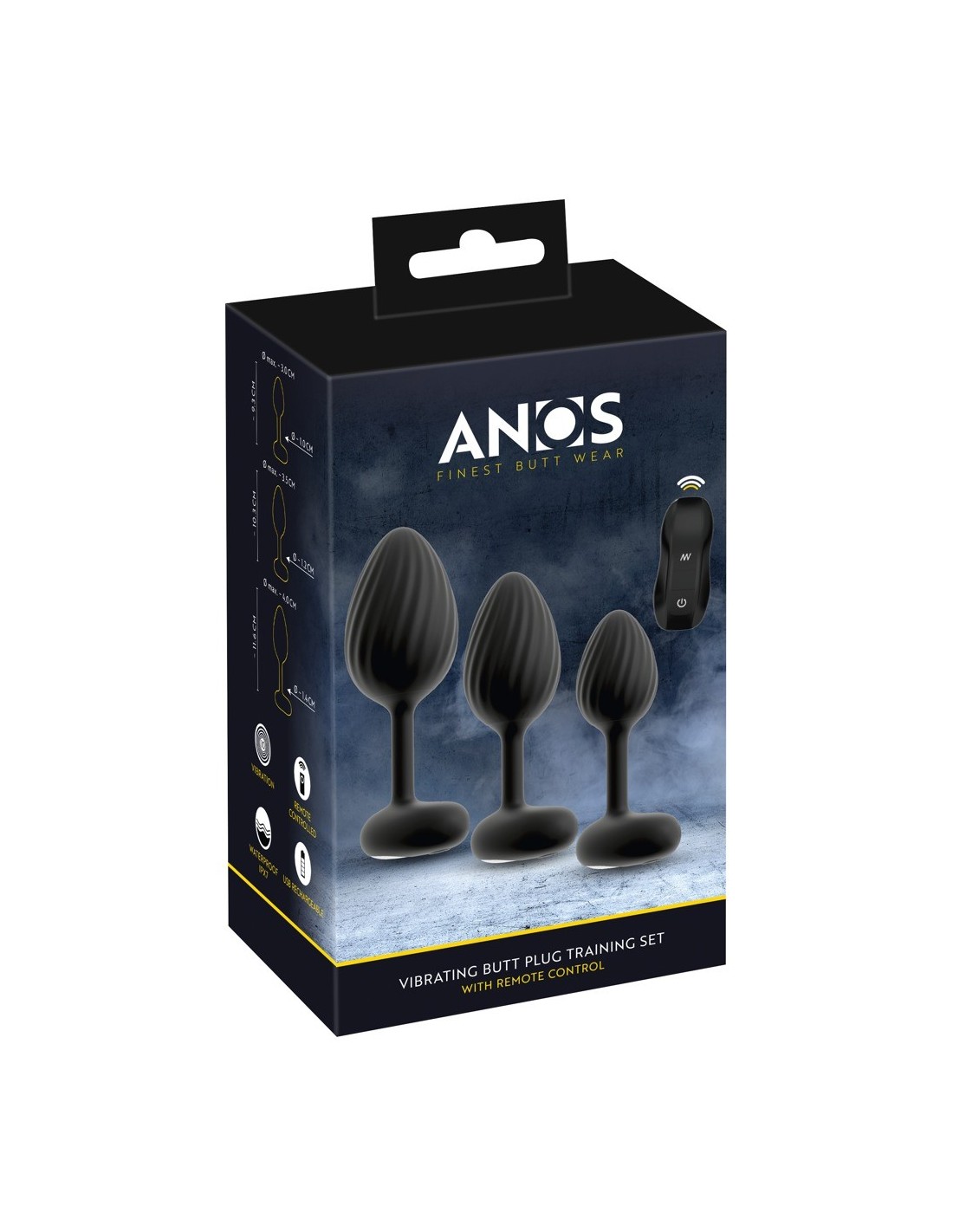 Set di butt plug RC con vibrazione di ANOS con pratico telecomando. Ben 3 plug vibranti di dimensioni diverse garantiscono il divertimento rettale e un eccitante allenamento allo stretching. Le potenti vibrazioni favoriscono il piacere anale e possono essere comodamente controllate a distanza. Con una portata di 5 metri, può essere controllato anche dal partner. Con 10 modalità di vibrazione, c'è la velocità giusta per tutti. Le vibrazioni possono essere controllate anche direttamente sul plug. Essendo completamente impermeabili, i plug sono ideali anche per un piacevole uso anale sotto la doccia e nella vasca da bagno.