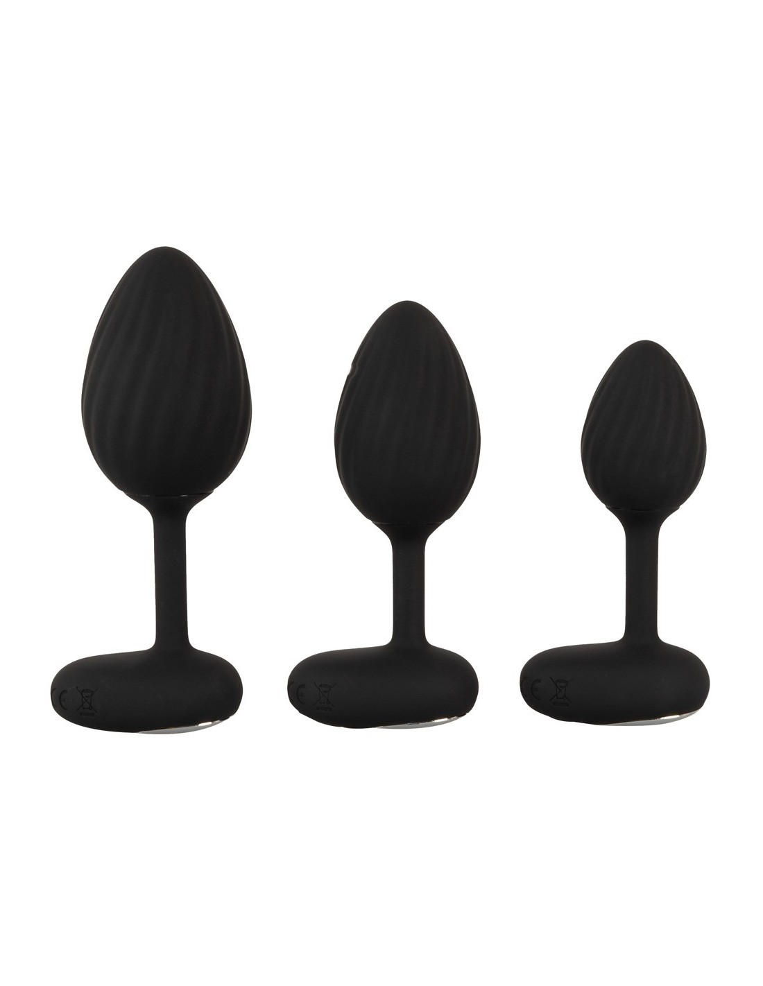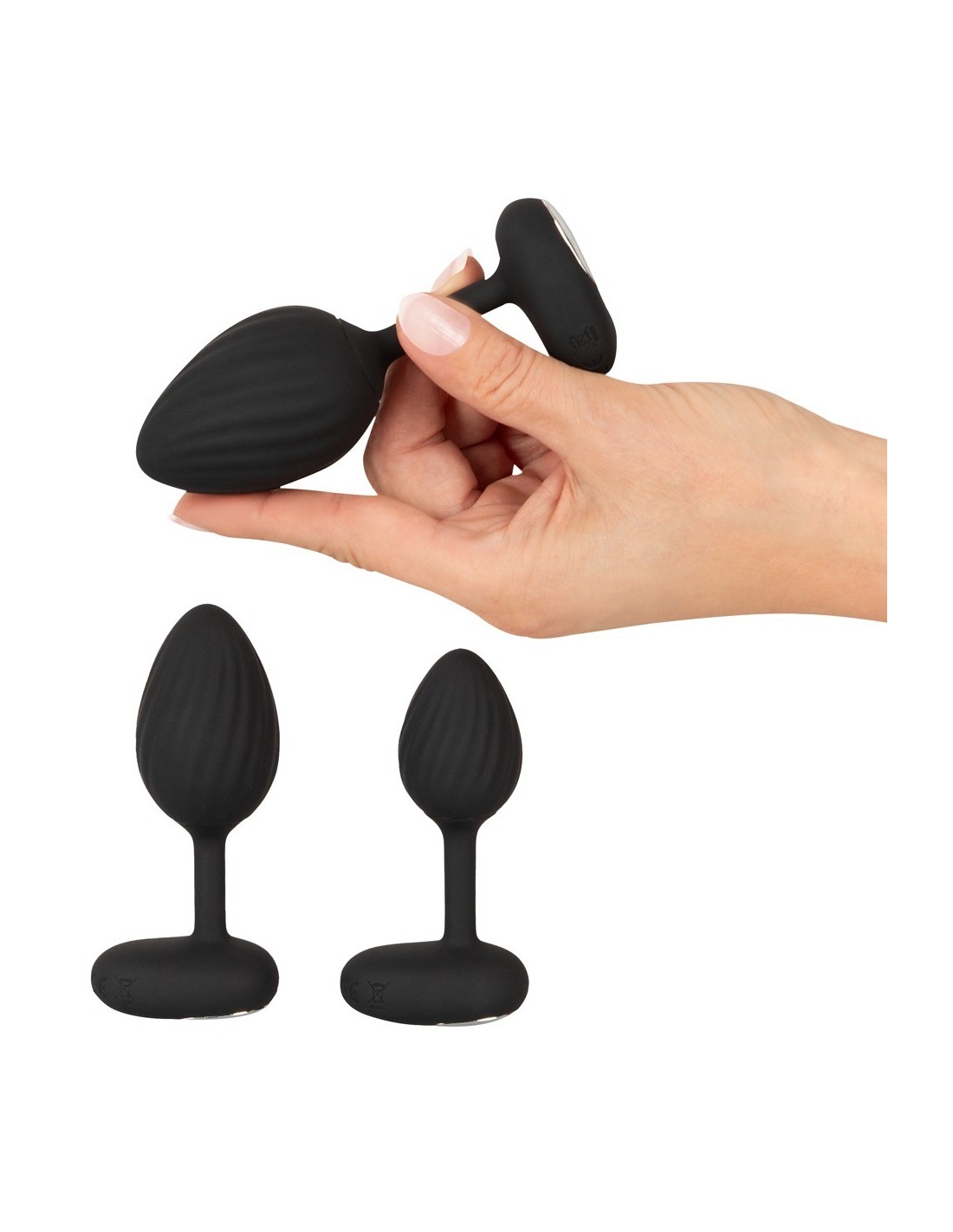 Ogni plug vibrante di forma conica è realizzato in silicone di alta qualità ed è facile da inserire. La struttura a scanalature pronunciate assicura una stimolazione profonda e una perfetta aderenza al canale anale. L'ampio tappo impedisce di scivolare in profondità ed è un elegante richiamo visivo con il suo dettaglio in metallo argentato. L'affusolamento extra stretto assicura un'usura confortevole ad ogni movimento. Ciò significa che i silenziosi vibro plug possono essere indossati anche più a lungo, ad esempio come stimolatore dell'orgasmo durante il sesso in solitaria o come avventura anale segreta nella vita di tutti i giorni.