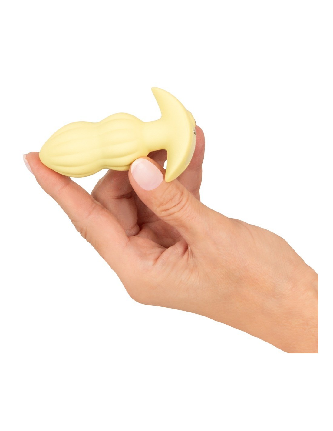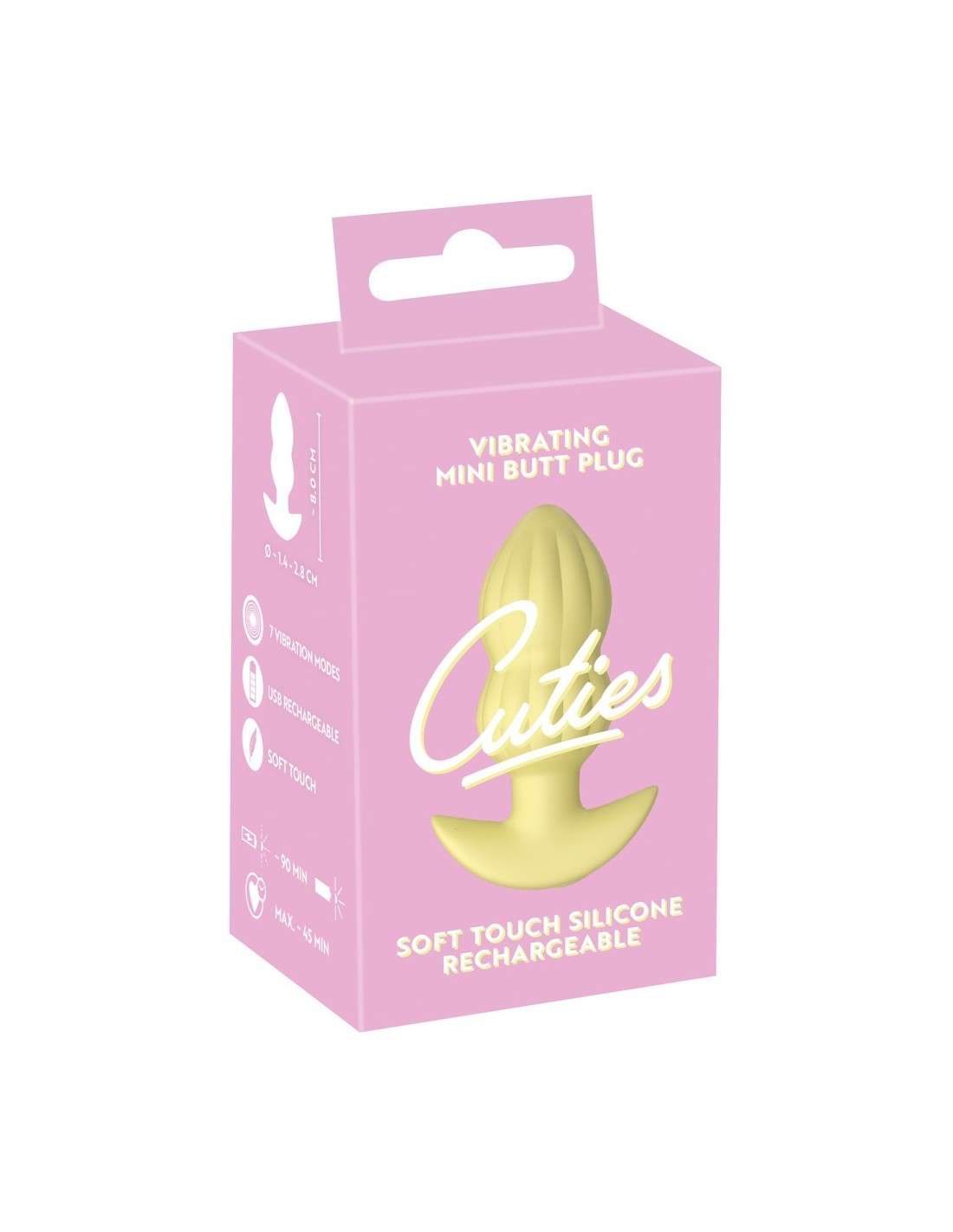 Il Mini Butt Plug Vibrante Giallo di Cuties è l'avventura sfrontata per chi vuole scoprire il piacere anale in modo giocoso. Con il suo design leggero come una piuma e la punta stretta, il plug compatto in silicone scivola come per magia e rende l'inserimento super facile. Le delicate gradazioni e le strutture scanalate offrono un'eccitante esperienza sensoriale. le 7 intense modalità di vibrazione offrono una varietà di sensazioni e un piacere intenso. Basta premere il pulsante!