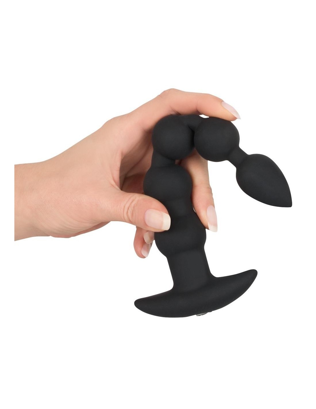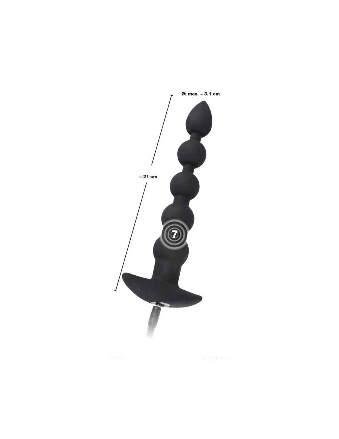 Catena a sfera anale con stopper e 7 modalità di vibrazione. Le 5 sfere successive creano una superficie variegata per la stimolazione intensiva del canale del piacere. Le 3 maglie superiori sono piacevolmente flessibili, mentre le 2 successive sfere formano una solida unità con il tappo. La catena a sfera anale con la sua texture setosa offre una sensazione di pelle morbida e vellutata. La palla più alta è di forma conica per un comfort ottimale.
