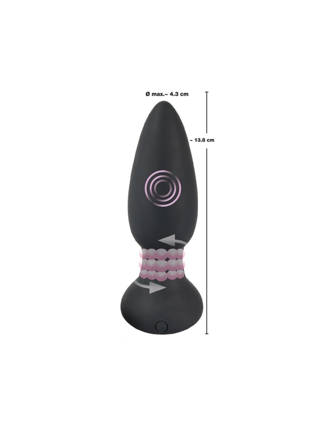 Questo plug anale fornisce 7 modalità di rotazione per un corretto allarme nell'intestino! Controllabile con il telecomando, è perfetto per eccitanti giochi di coppia o per bollenti corse in solitaria. Diverse piccole sfere ruotano nell'asta e creano una stimolazione inimmaginabile. La base impedisce una penetrazione troppo profonda. Impermeabile per un caldo divertimento nella vasca e nella doccia. Include cavo di ricarica USB e batteria per il telecomando (1 x 23A).