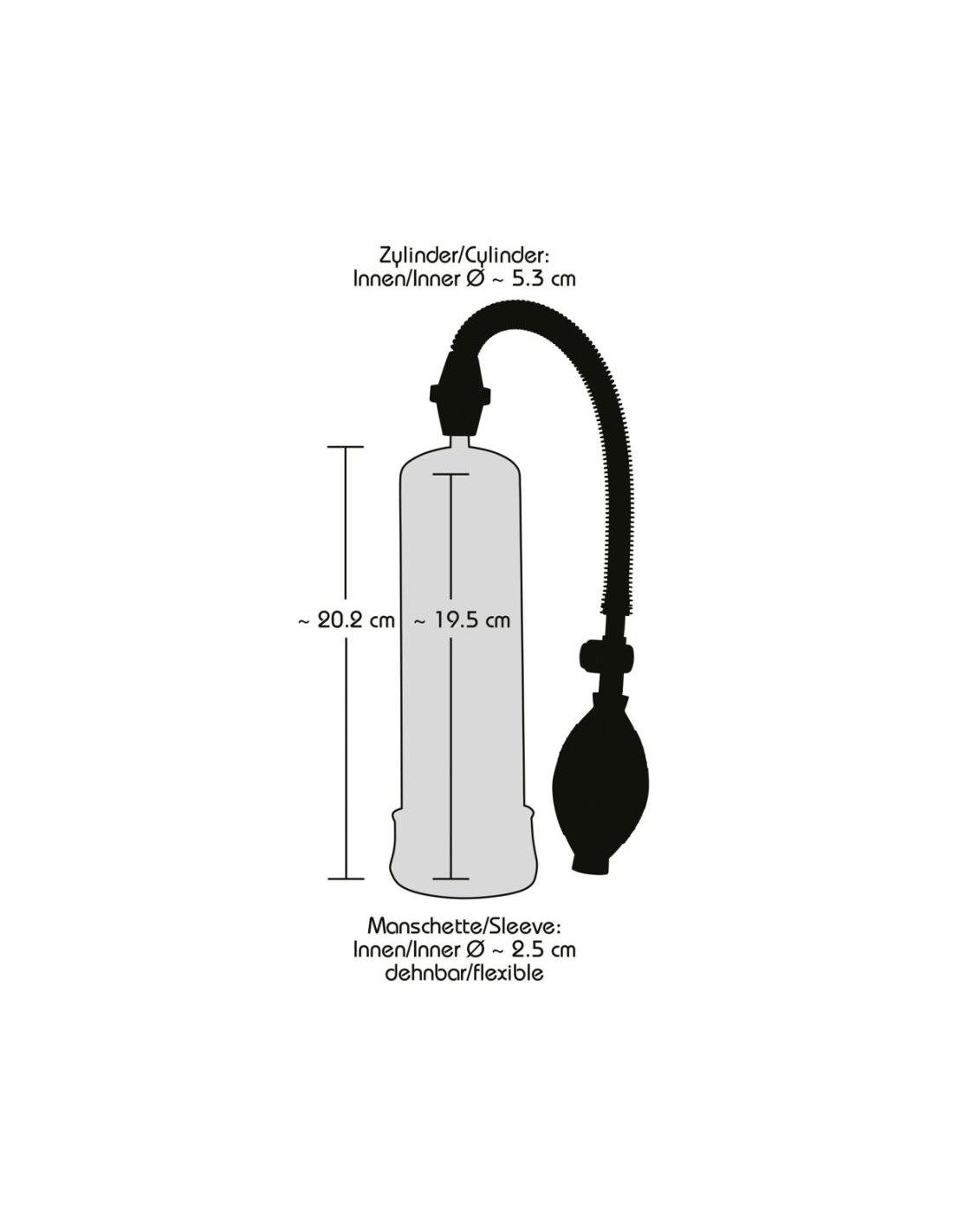 Questa pompa per pene/di potenza con la classica e maneggevole pompa può mettere il vostro pene in forma smagliante! Lunghezza complessiva cilindro di pompaggio ca. 20 cm, O̸ 5,7 cm. Nero. Materiale: ABS, PVC, TPE, SAN.