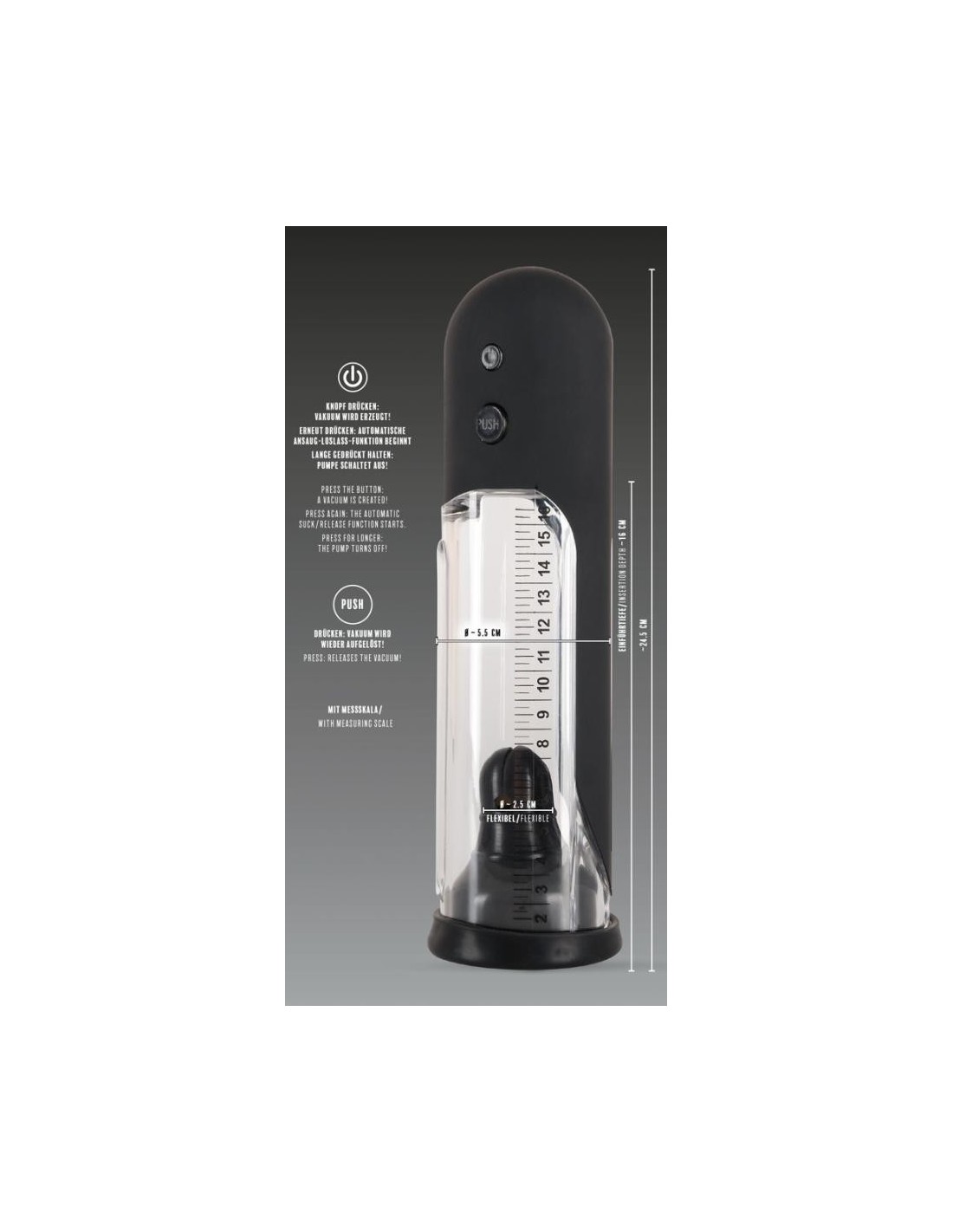 Pompa per il pene completamente automatica con 3 diverse funzioni di aspirazione, che consente l'utilizzo con una sola mano. L'intensità del vuoto può essere facilmente regolata con un solo pulsante.