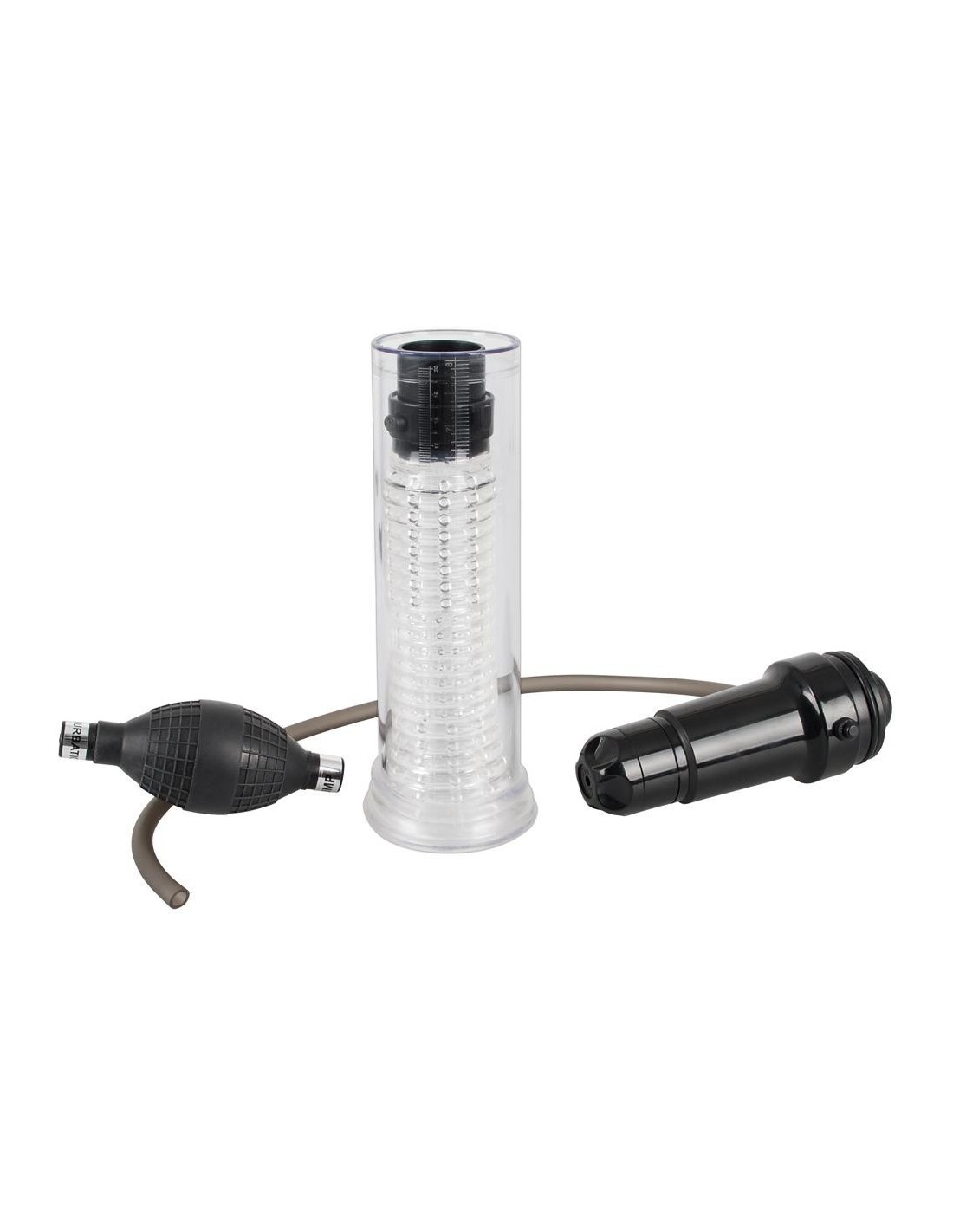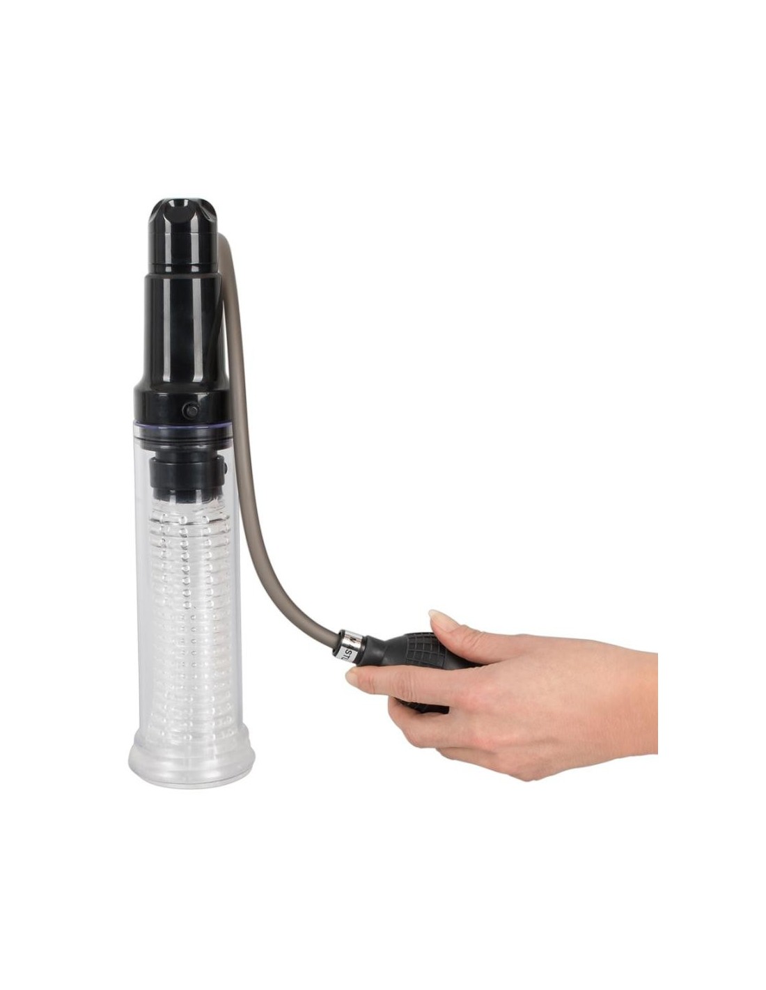 A seconda di come la sfera della pompa è attaccata al tubo (lungo 49 cm) del cilindro, o l'aria viene aspirata fuori per creare il vuoto effettivo per l'allenamento del pene/potenza o l'aria fluisce dentro per l'effetto di aspirazione arrapante, che è simile a un pompino. Per una stimolazione aggiuntiva, puoi anche accendere la vibrazione del glande, che è continuamente regolabile da morbida a dura.
